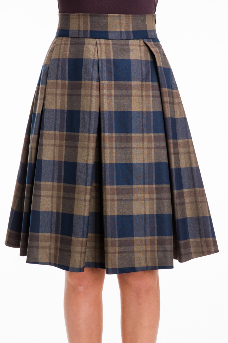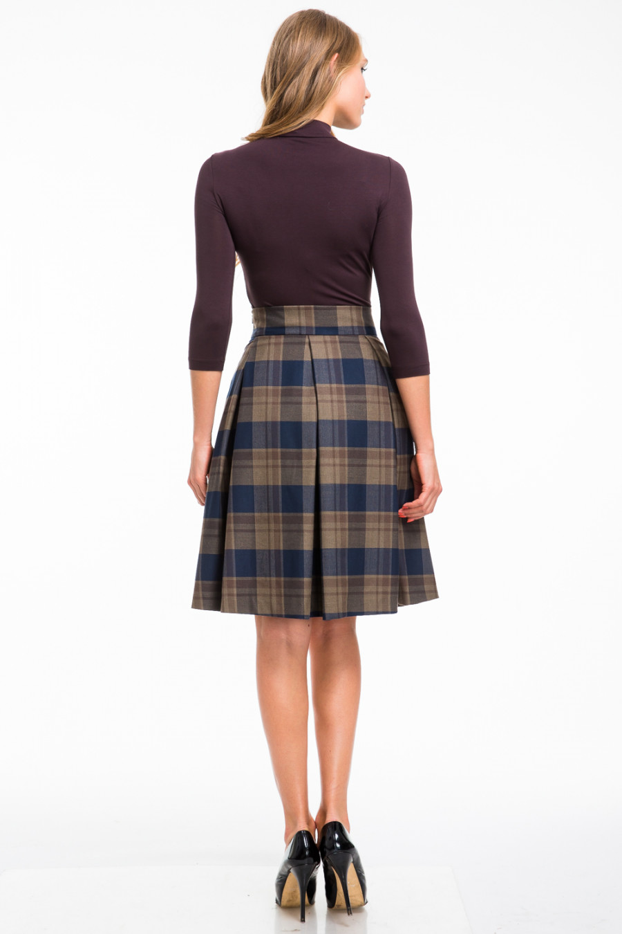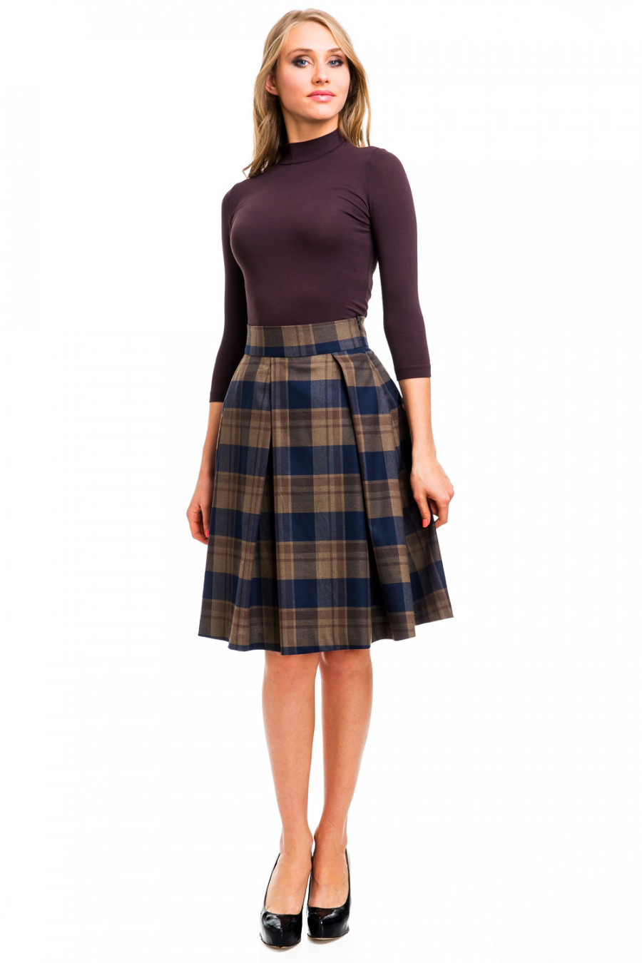 Превосходная юбка-солнце длины миди. Модель выполнена из плотного костюмного материала и оформлена принтом в клетку и встречными складками и украшена широкой вставкой на талии. Сбоку - потайная застежка на молнию. Отличный вариант как для повседневного использования, так и для работы в офисе.
