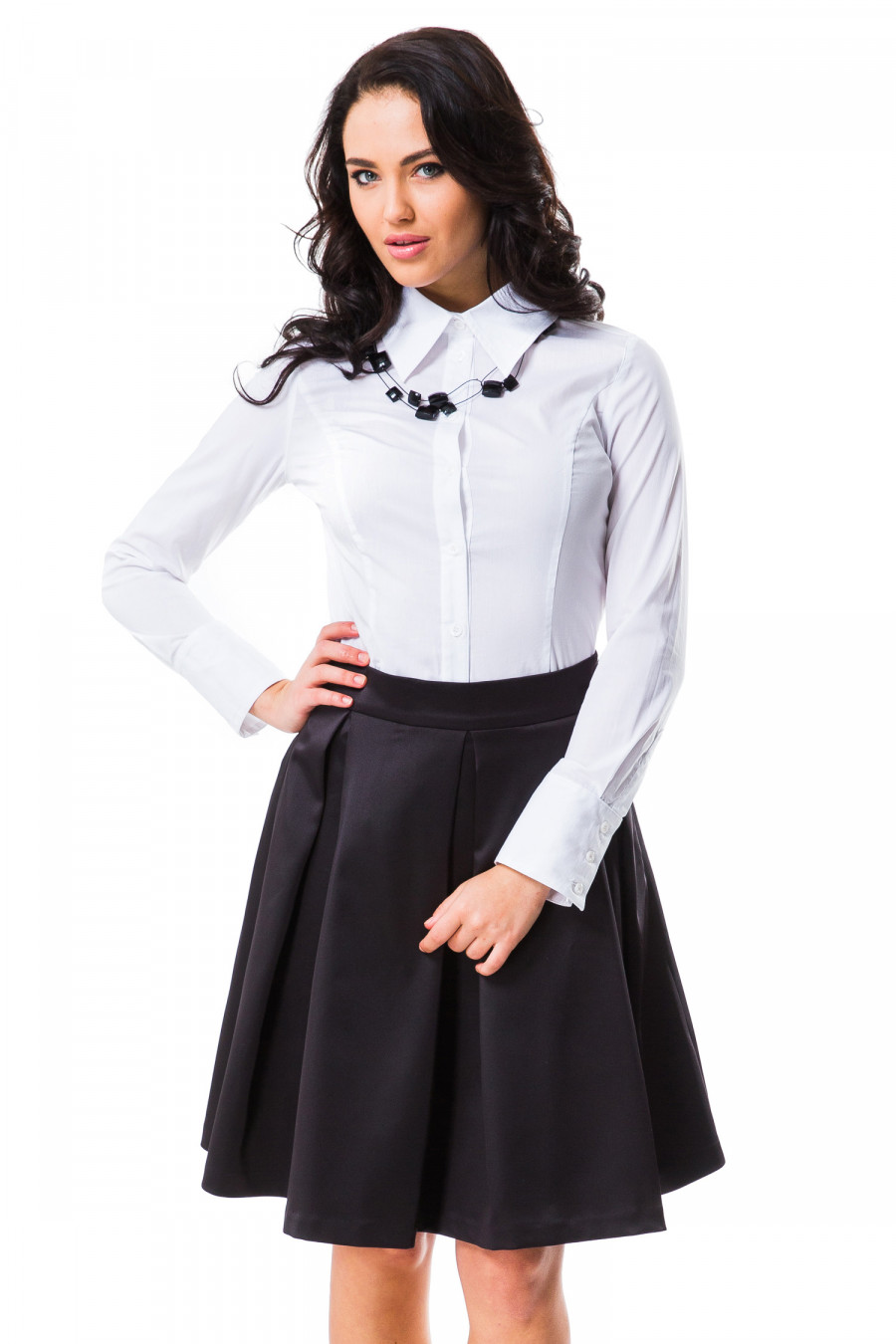 Очаровательная юбка миди выполнена в лаконичном дизайне. Модель на широком поясе украшена встречными элегантными складками. Выполнена из плотного костюмного материала. Сзади застежка на молнию. Отличный повседневный вариант для современной леди.