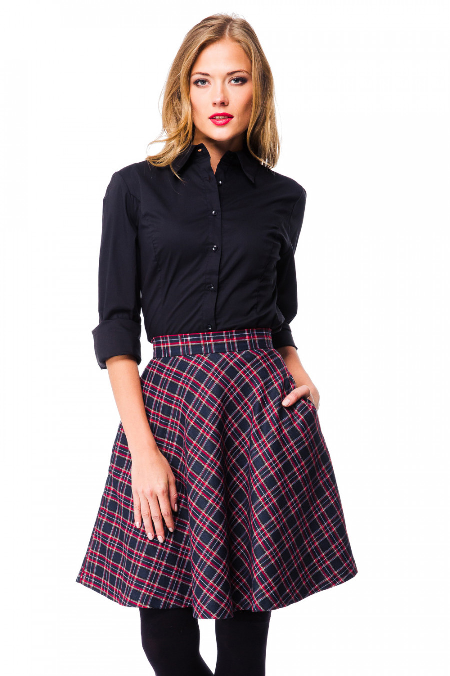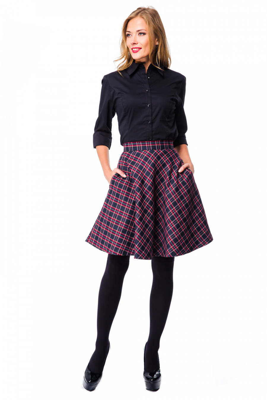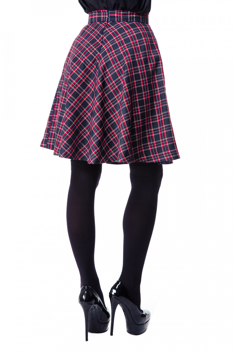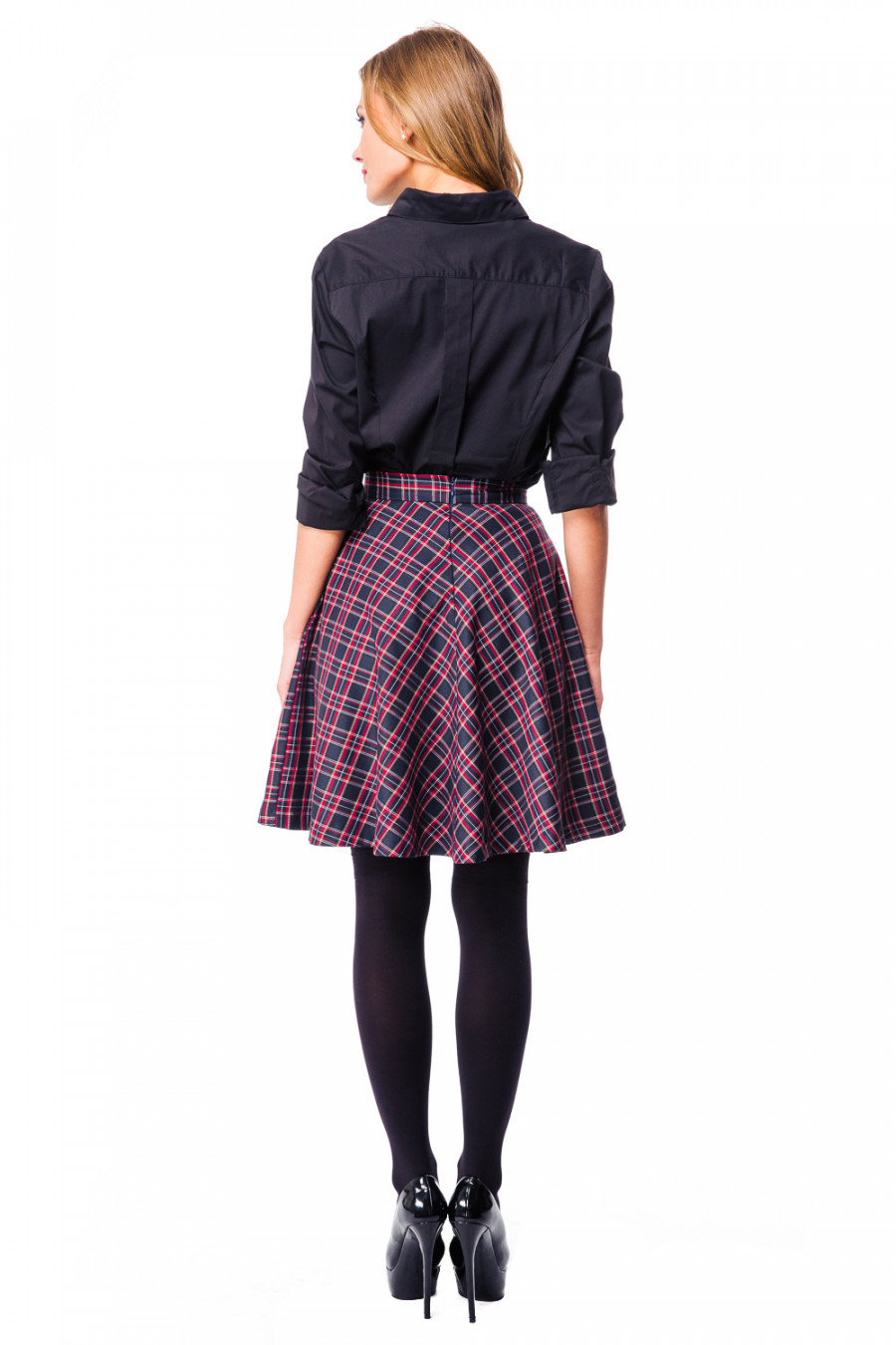 Стильная юбка-солнце стильного дизайна. Модель на поясе с застёжкой сзади на молнию. В боковых швах имеются карманы. Выполнена из качественного материала (65%шерсть 35% хлопок) костюмной группы и украшена оригинальным принтом в клетку. Длина-выше колена. Женственное решение для осени.