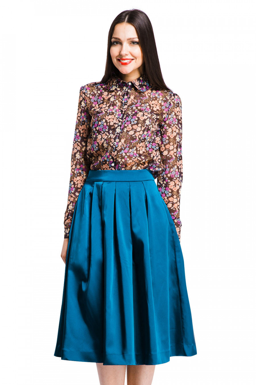 Шикарная юбка-солнце. Модель актуальной длины-миди. Модель на широком поясе украшена встречными элегантными складками. Выполнена из плотного костюмного материала. Сзади-застёжка на молнию.