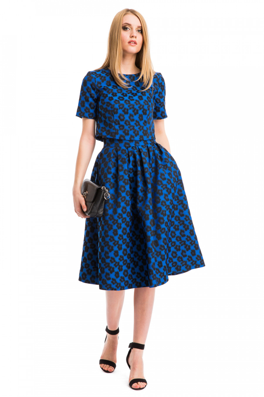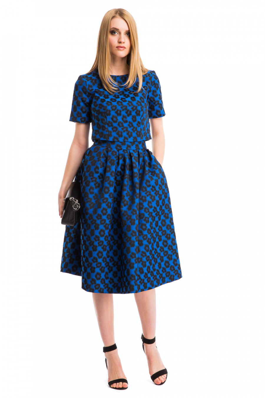 Шикарная юбка-солнце. Модель актуальной длины-миди. Материал - жаккард выглядит очень нарядно и празднично. Сзади-застёжка на молнию.