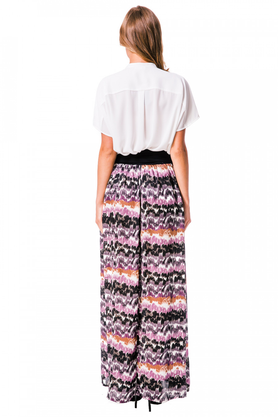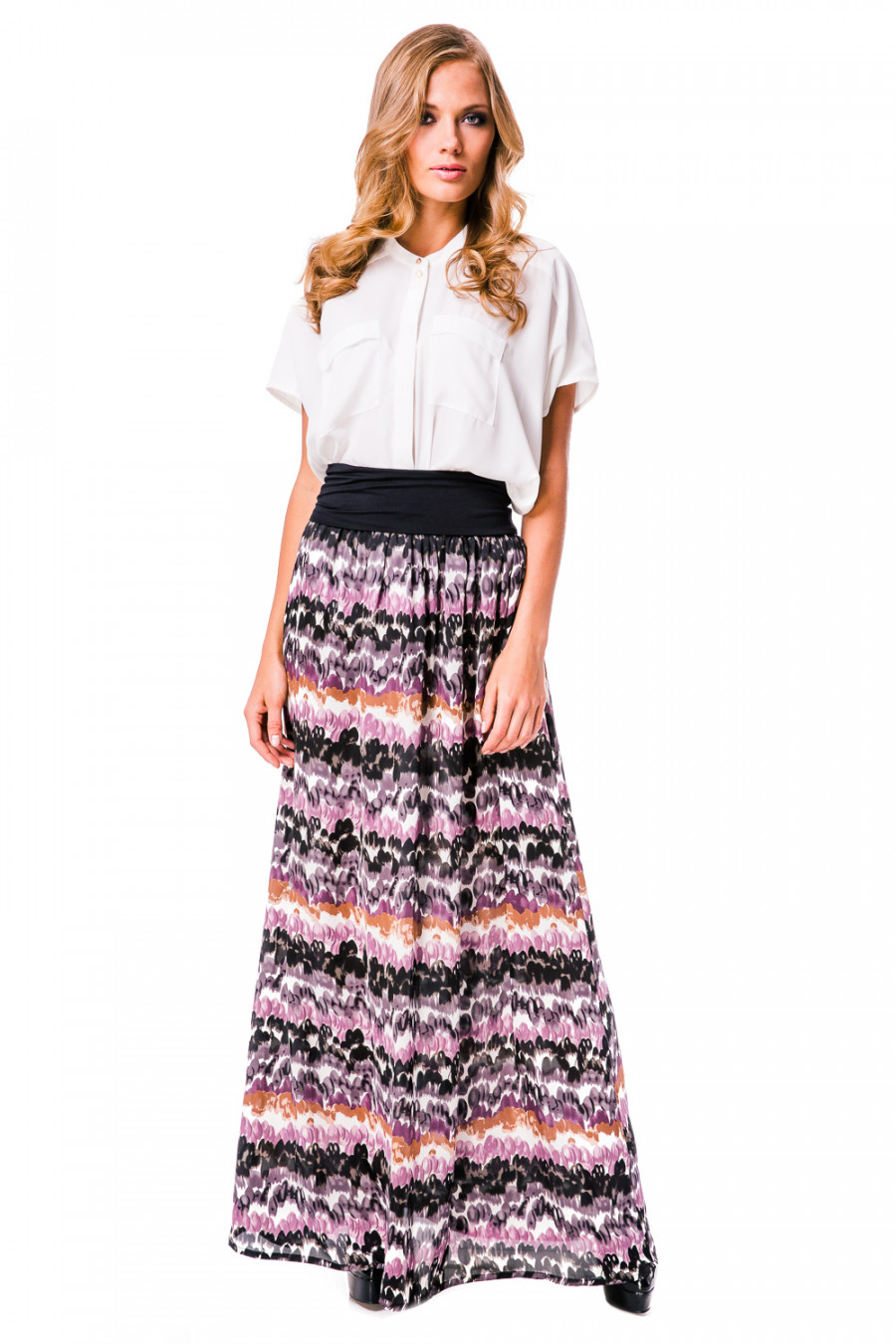 Стильная юбка-сарафан макси. Модель на широкой двойной резинке, свободного кроя и расклешенная книзу. Выполнена из 100% микрофибры с использованием контрастной вставки на поясе и дополнена оригинальным принтом в этническом стиле. Изделие будет прекрасно гармонировать с любыми предметами гардероба.