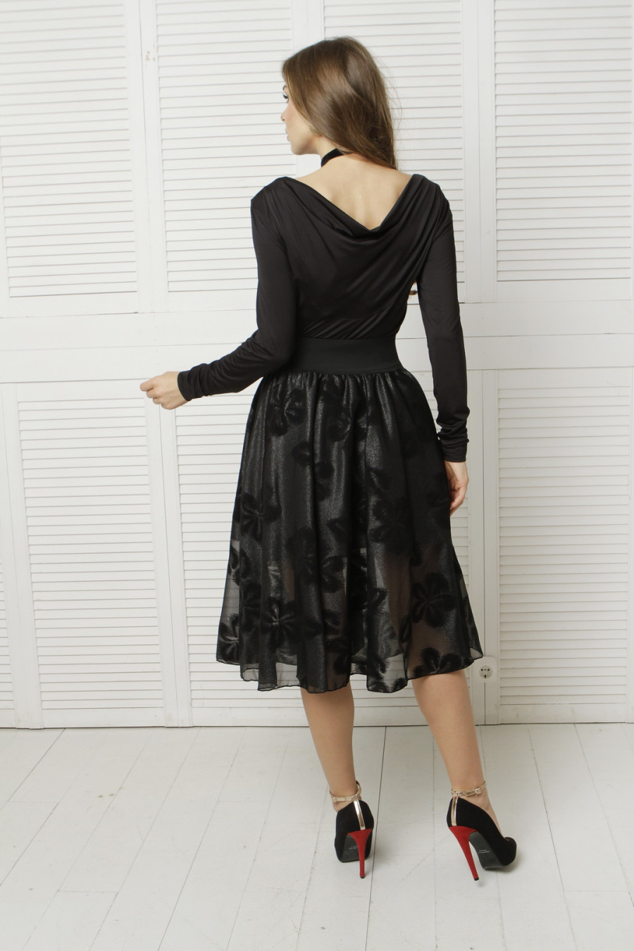 Нарядная расклешенная юбка из плотной сетки с бархатными цветами и серебристым напылением .На подкладке из плотной шелковистой ткани текстильной группы. Пояс из широкой эластичной резинки .