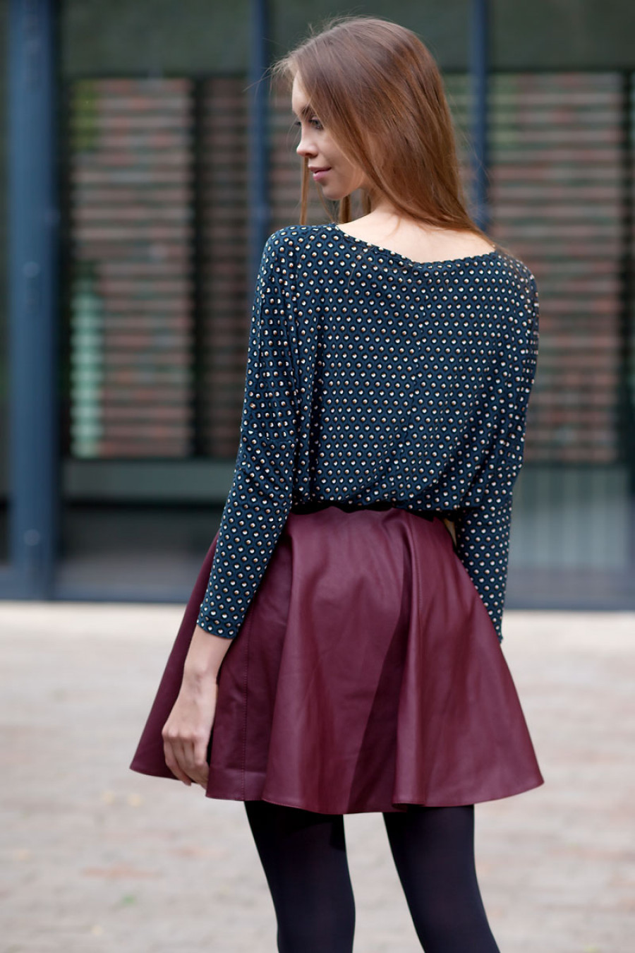 Стильная и эффектная мини-юбка из кожи. Модель силуэта клеш. Сзади застежка-молния.