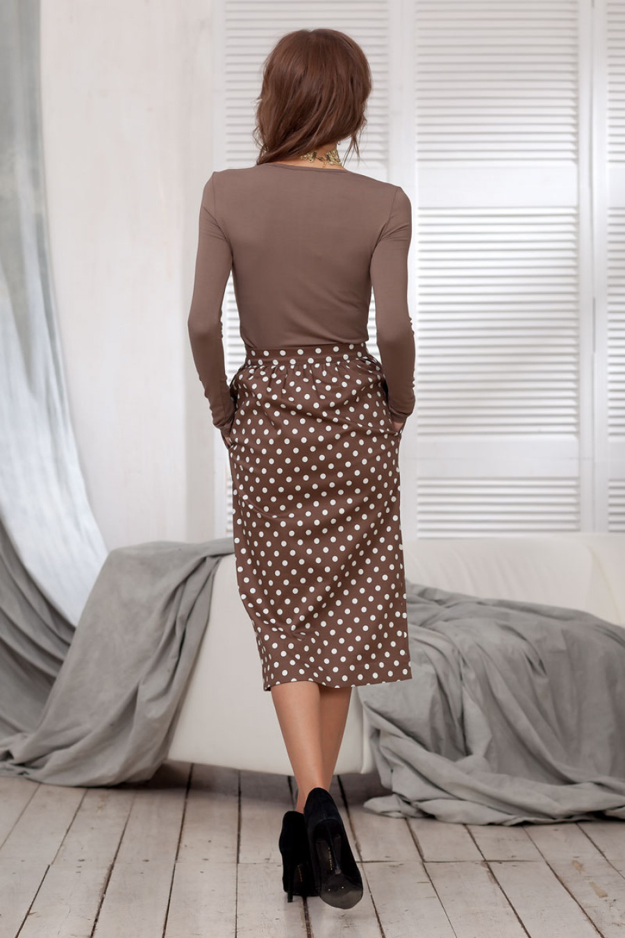 Юбка миди прямого силуэта из хлопковой ткани. Высокая, присборенная талия подчеркивает силуэт и женственность. Спереди планка на пуговицах. В боковых швах выполнены карманы. Юбка - отличный вариант для летних прогулок.
