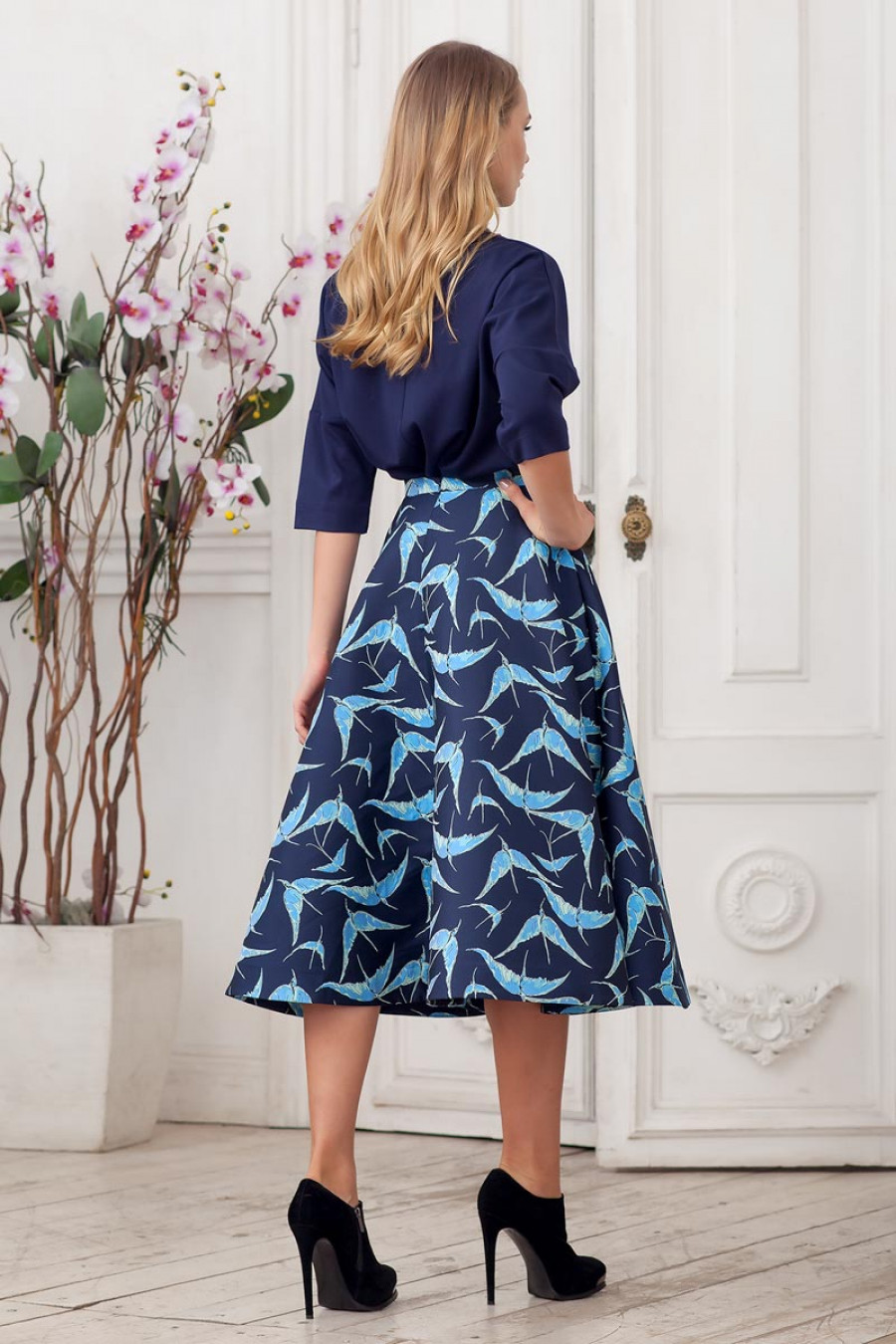 Юбка миди – лучший вариант для создания элегантного женственного образа! Эффектное жаккардовое плетение придает модели особый благородный лоск с торжественными нотками. Расклешенный фасон прекрасно обыгрывает фигуру. В боковых швах выполнены карманы. Для оптимального комфорта сзади потайная застежка-молния.