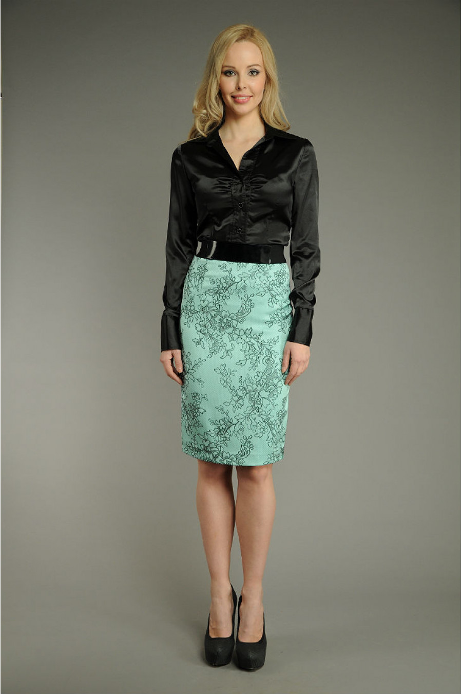 Восхитительная юбка - карандаш с завышенной талией. Данная модель точно подчеркнёт линию талии. Создаст выразительный силуэт. Комфортная ткань. На нежном зеленом фоне располагается изящный цветочный принт. Отличный выбор как для практичных дам так и для гламурных модниц.