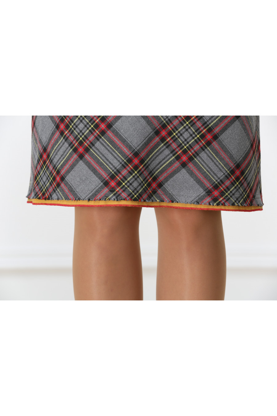 Юбка на средней посадке прямая с кантом. Клетка,серо-красная