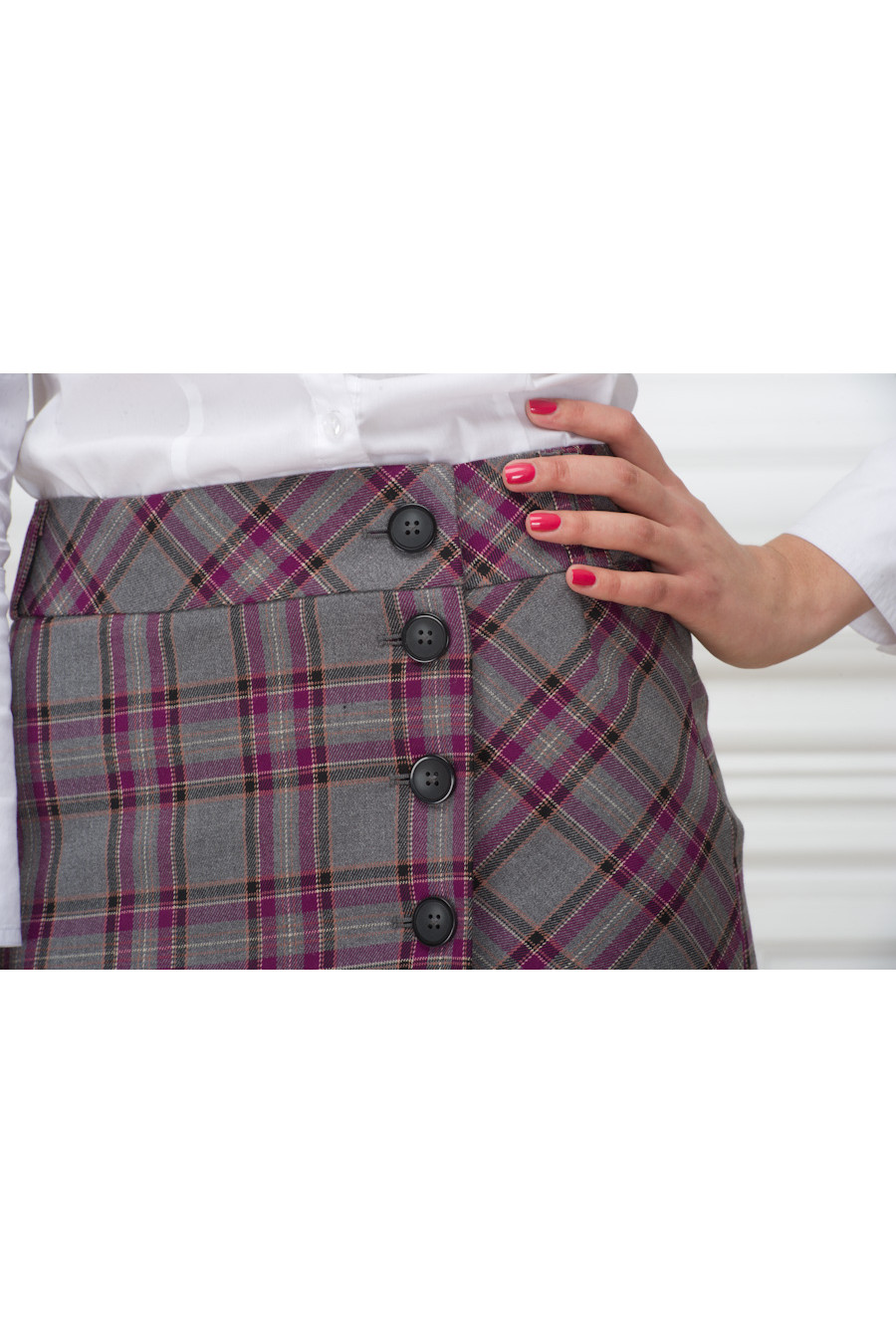 Юбка на средней посадке прямая с запахом «Клетка» фиолетовая