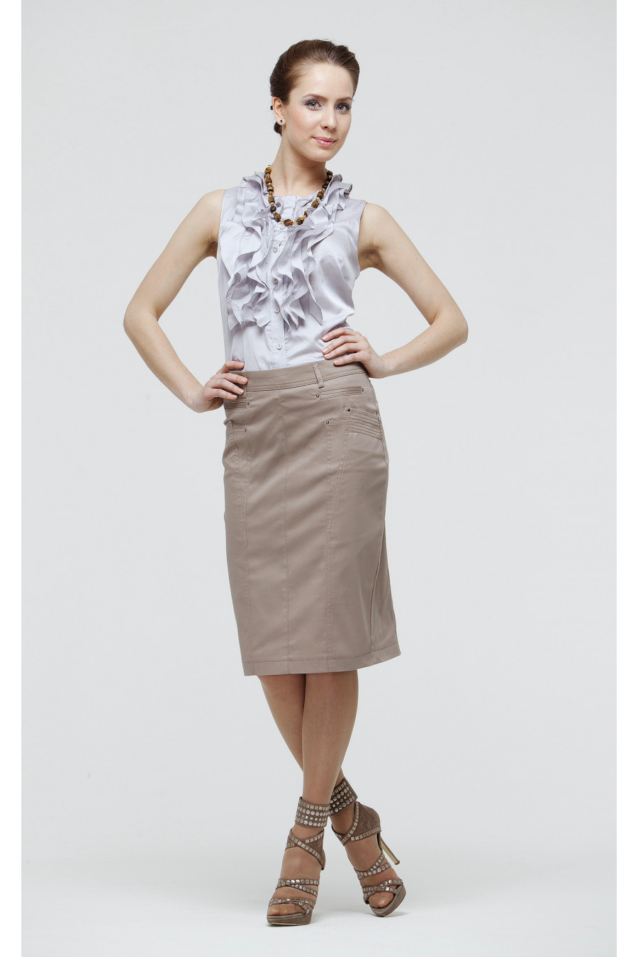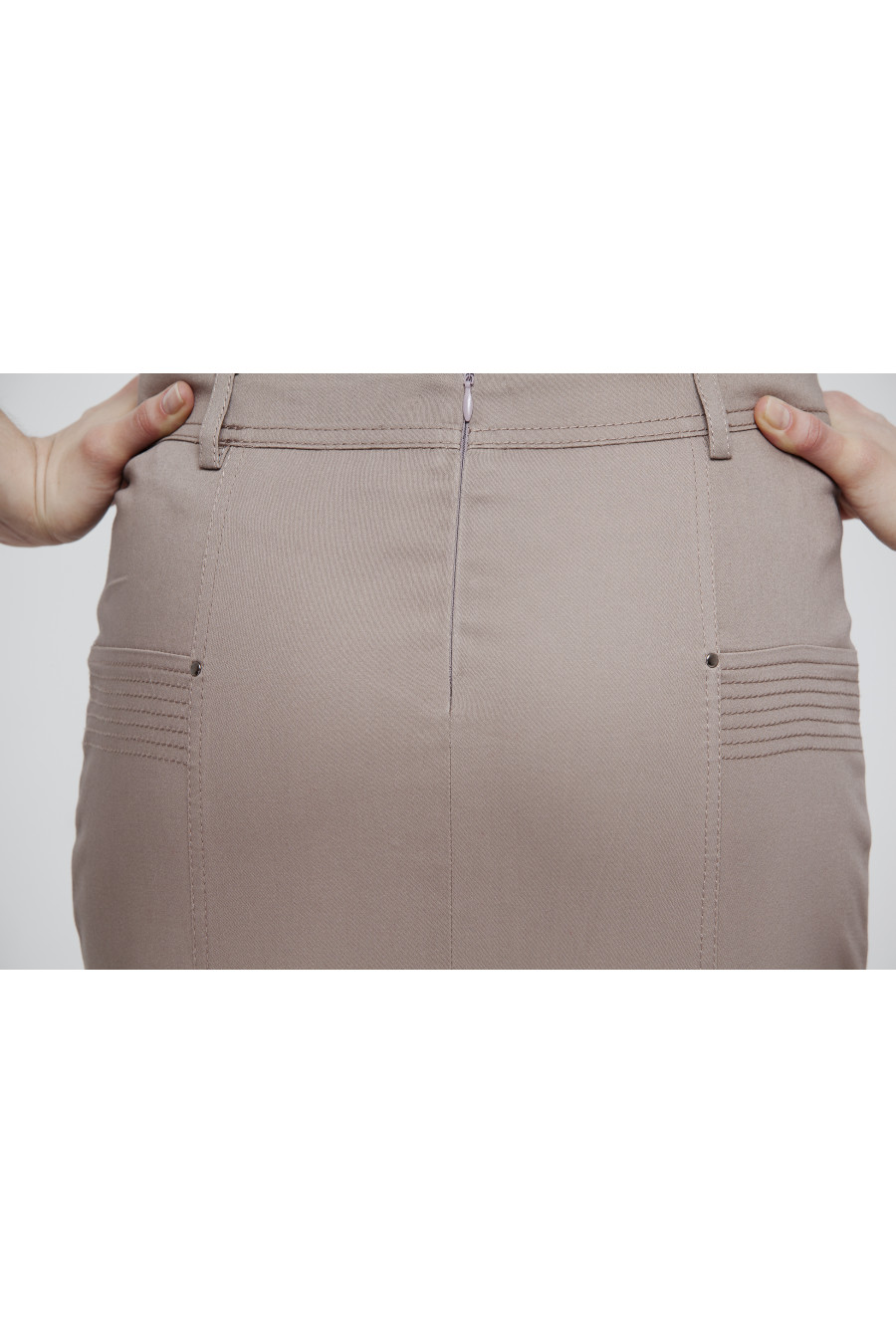 Юбка на средней посадке прямая с рельефами и карманами «ТТ» «Хлопок» темно-бежевая