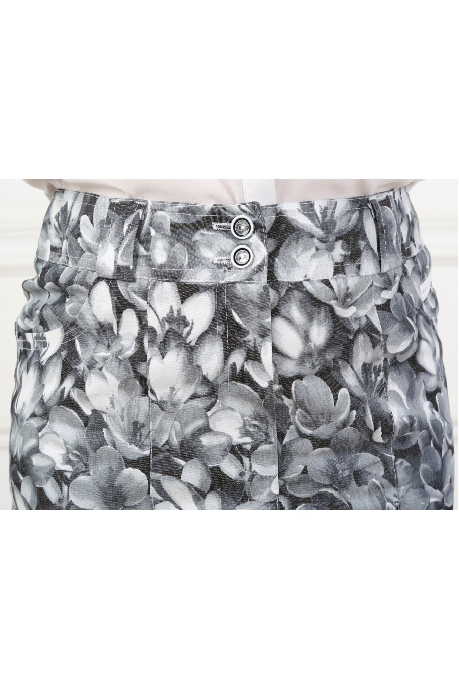 Юбка на средней посадке прямая с рельефами и карманами «Черно-белые Цветы