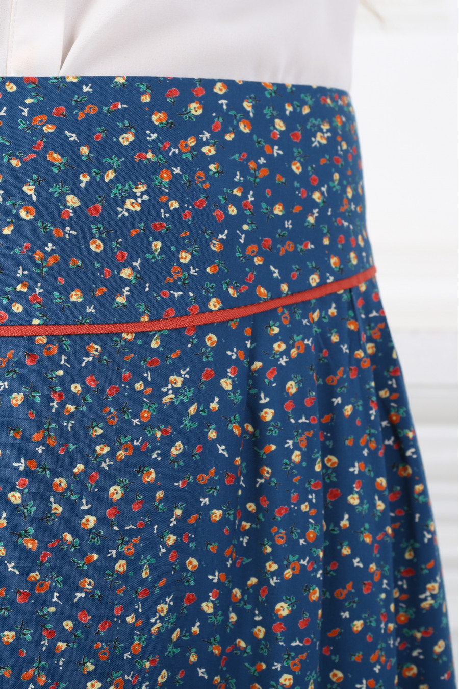 Юбка бирюза на средней посадке на кокетке с цветным кантом в мелкую розочку - «Штапель»