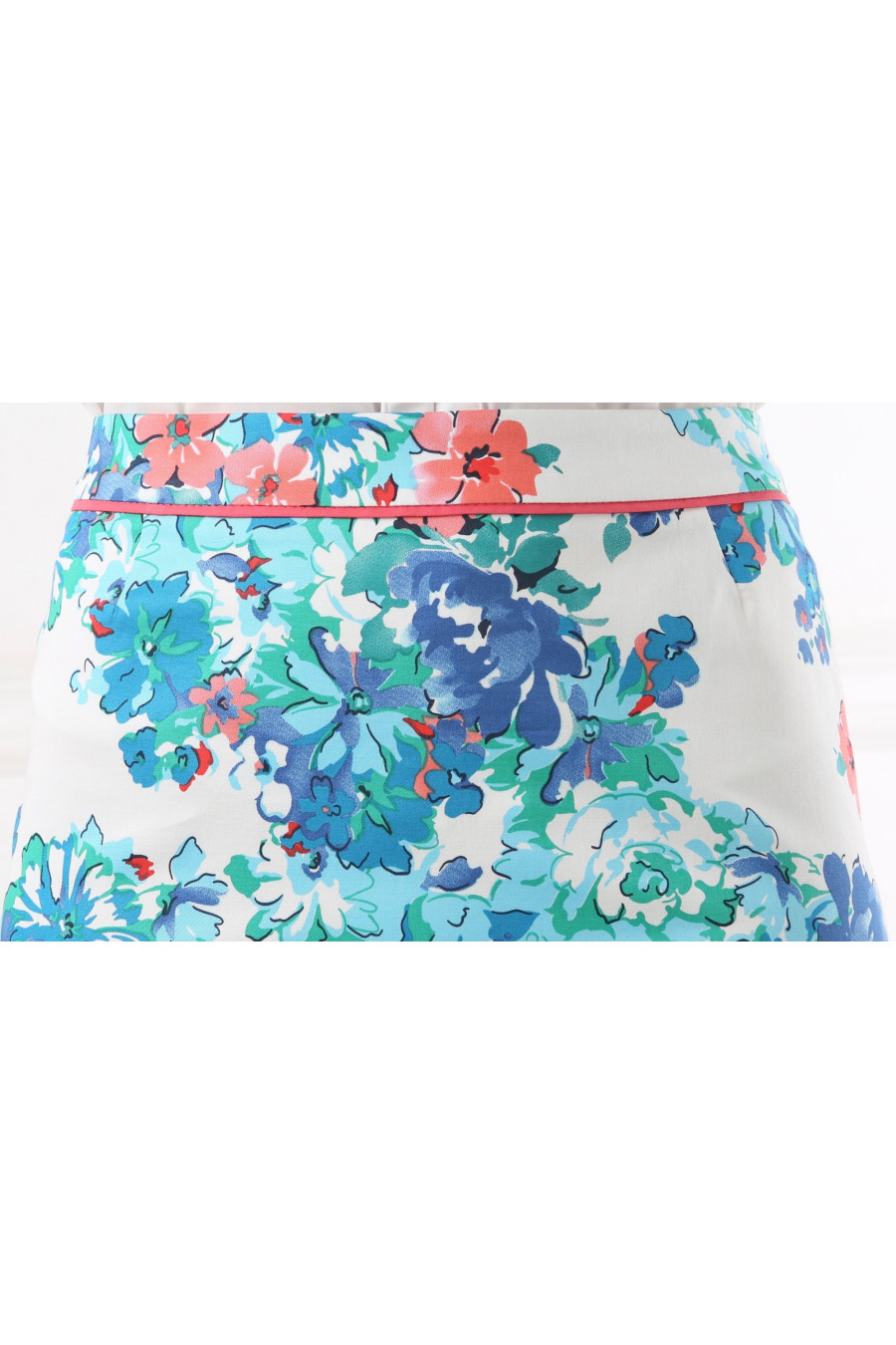 Юбка на средней посадке прямая "Хлопок "Мята"бело-голубая