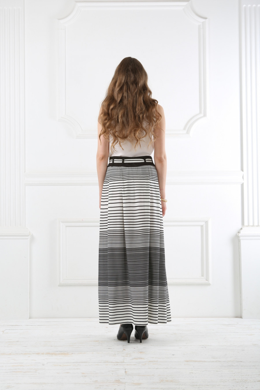 Юбка на средней посадке, длинная на кокетке "Штапель "Зебра"черно-белая
