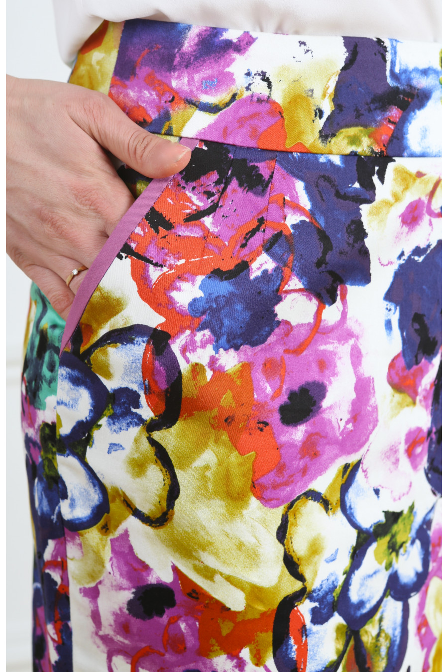 Юбка разноцветная на средней посадке прямая с карманами - «Акварель»
