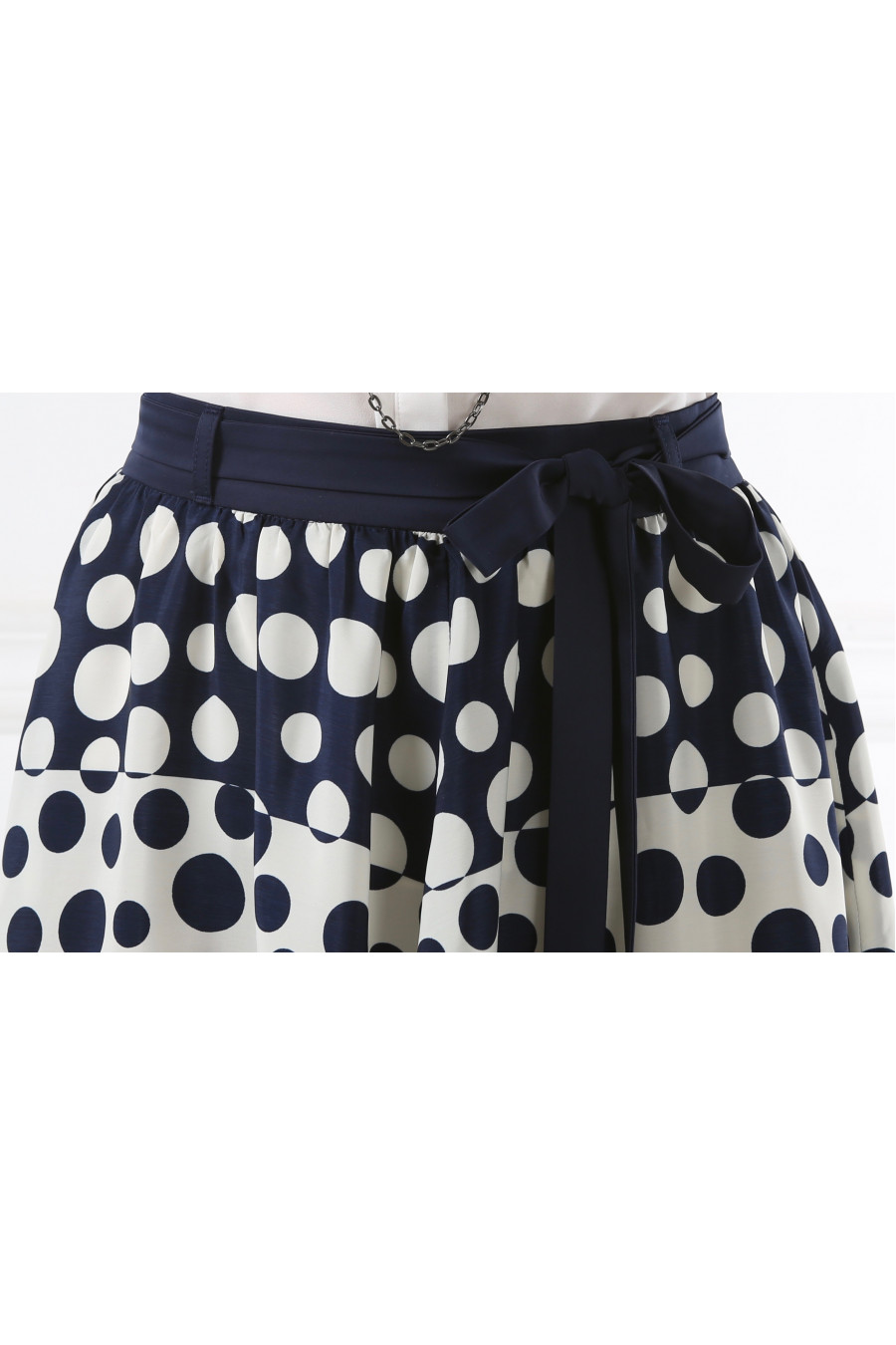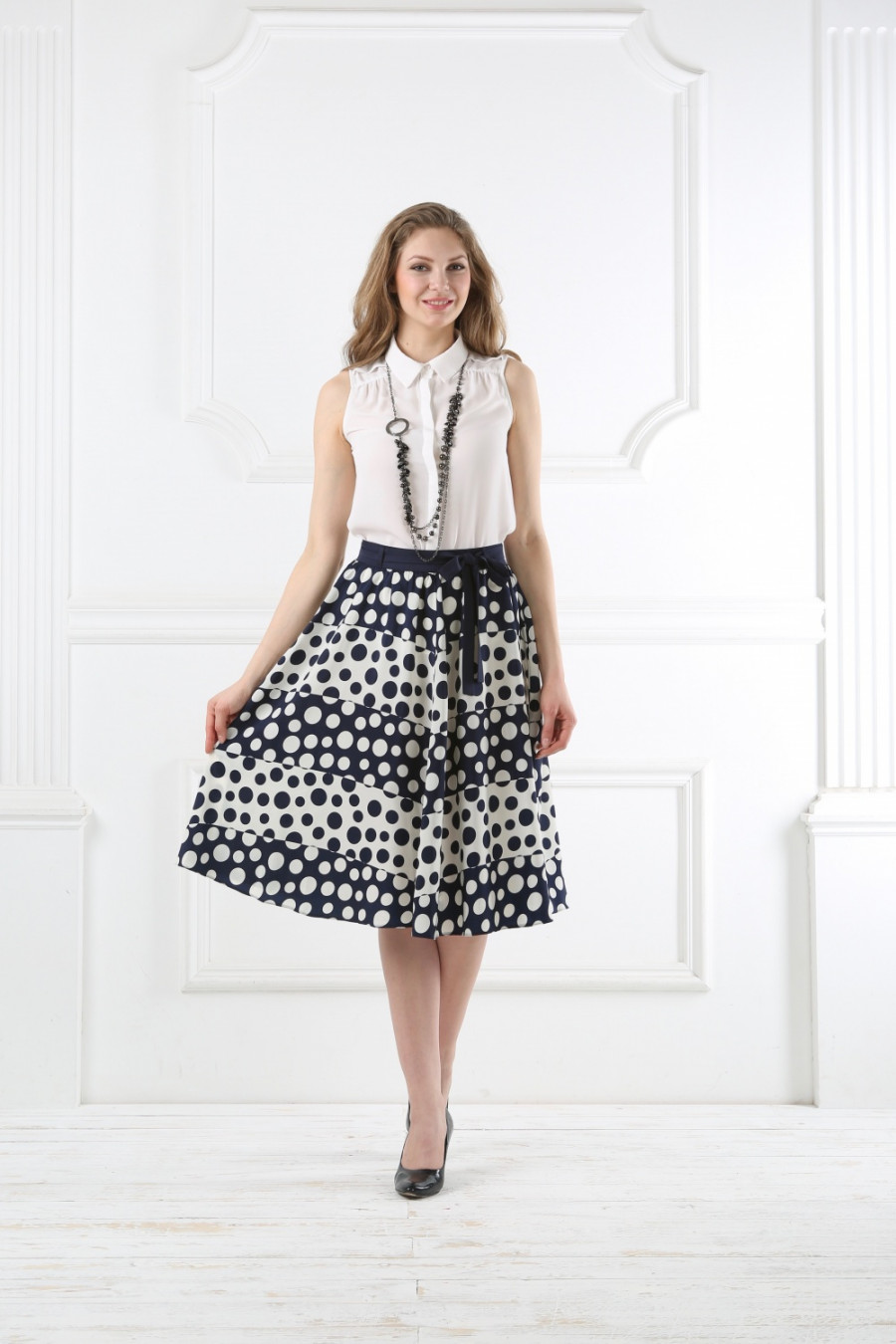 Юбка бело-синяя на высокой посадке на сборке - «Полосы-горох»