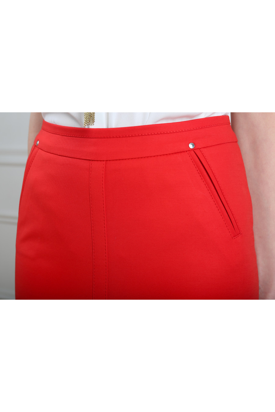 Юбка на средней посадке с карманами. Хлопок,красная