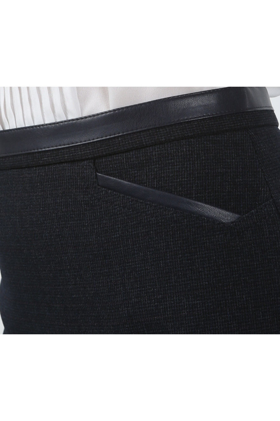 Юбка на высокой посадке удлиненная и зауженная с карманами из кожи Пье-де-пуль синяя