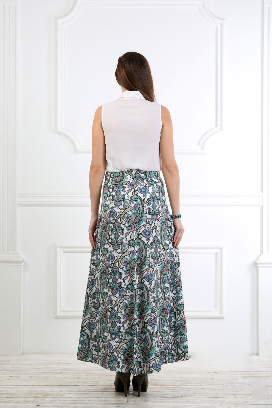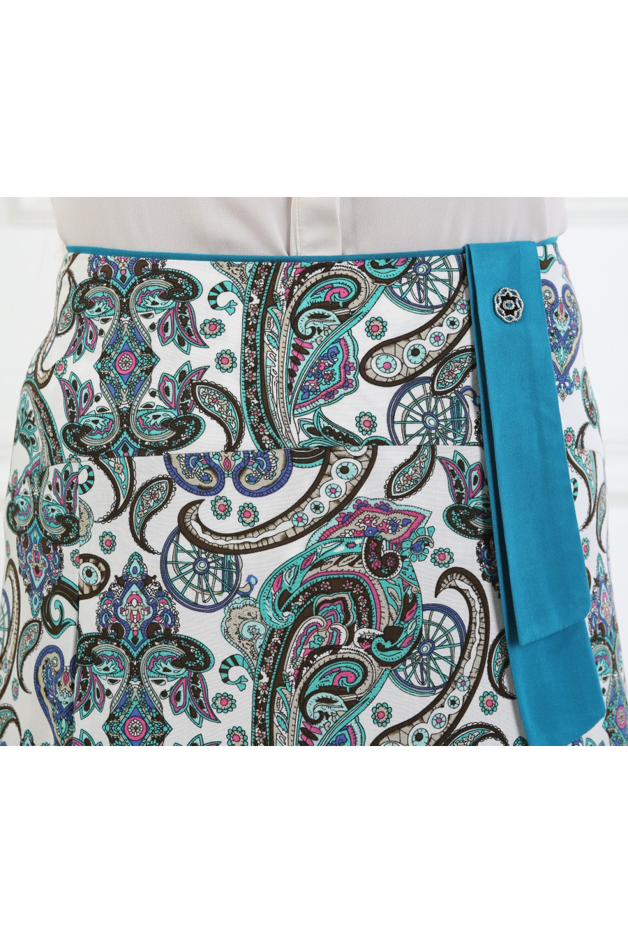 Юбка бирюзовая на средней посадке на кокетке с декоративным элементом и кантом - «Фантазия»