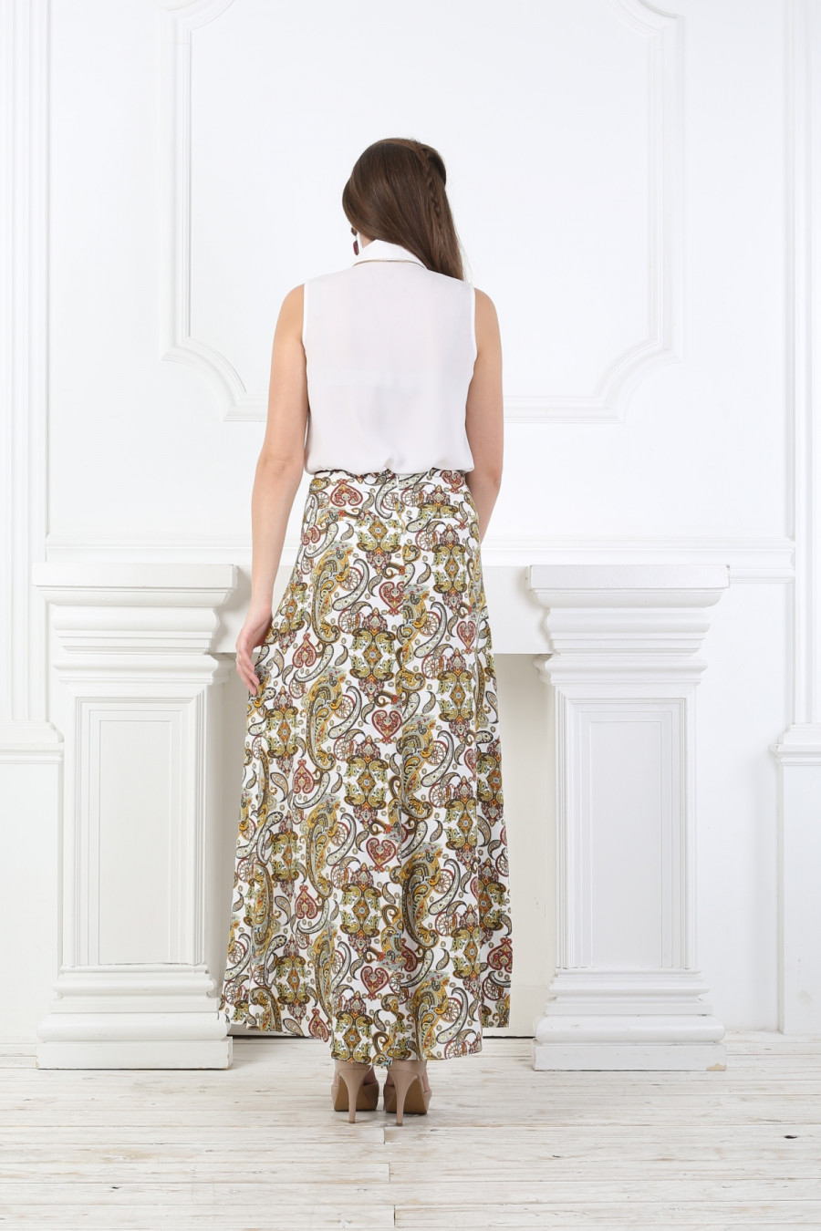 Юбка на средней посадке на кокетке с декоративным элементом и кантом «Фантазия» желтая