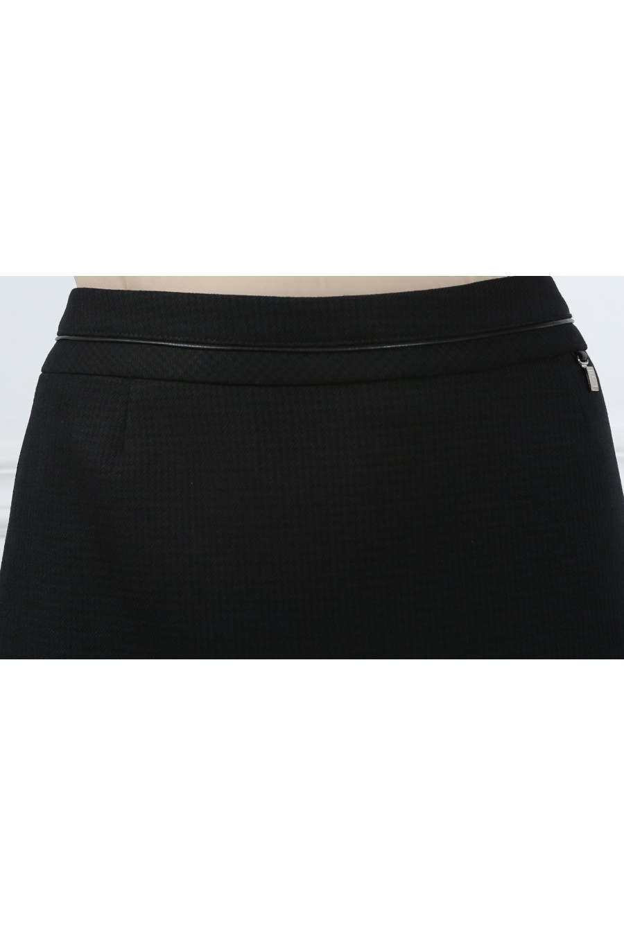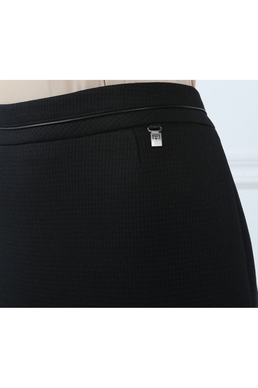 Юбка на средней посадке удлиненная "Виндзор"черно-коричневая с кожанным кантом