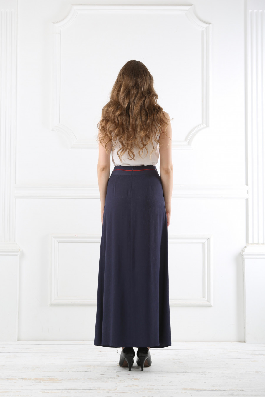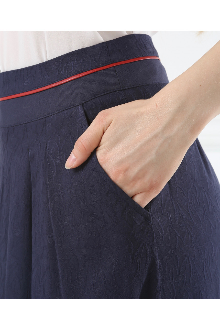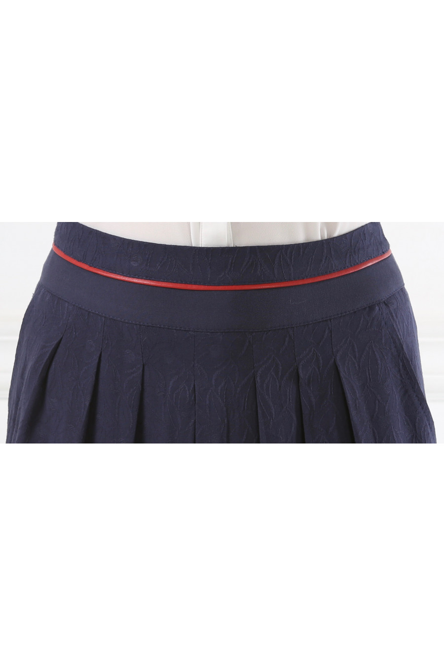 Юбка синяя с красным кантом на средней посадке на кокетке - «Жаккард»