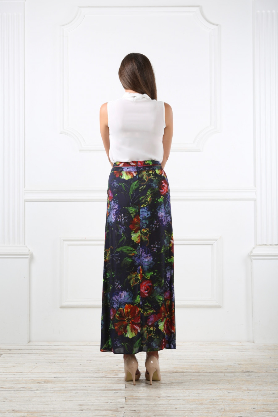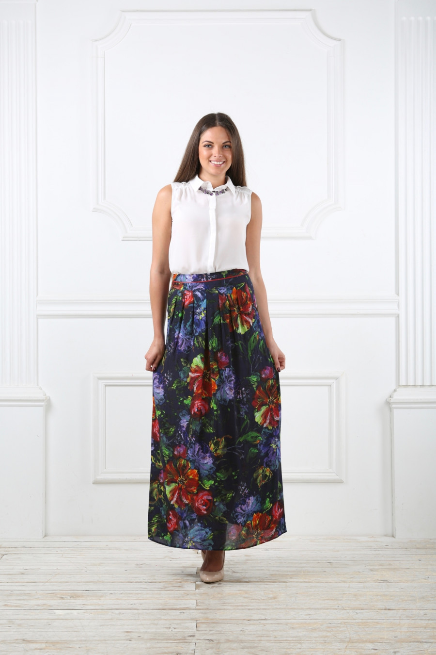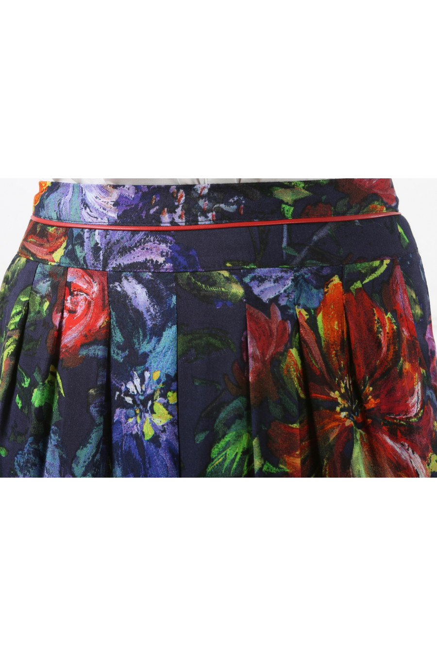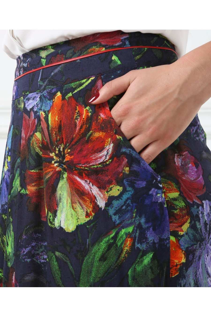 ЮБКА НА СРЕДНЕЙ ПОСАДКЕ НА КОКЕТКЕ С КАРМАНАМИ "ШТАПЕЛЬ"ГЕОРГИНЫ" СИНИЕ С КРАСНЫМ КАНТОМ
