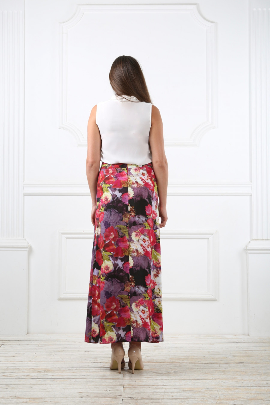 ЮБКА НА СРЕДНЕЙ ПОСАДКЕ С КАРМАНАМИ НА КОКЕТКЕ "ШТАПЕЛЬ"ГЕОРГИНЫ"РОЗОВАЯ С КРАСНЫМ КАНТОМ