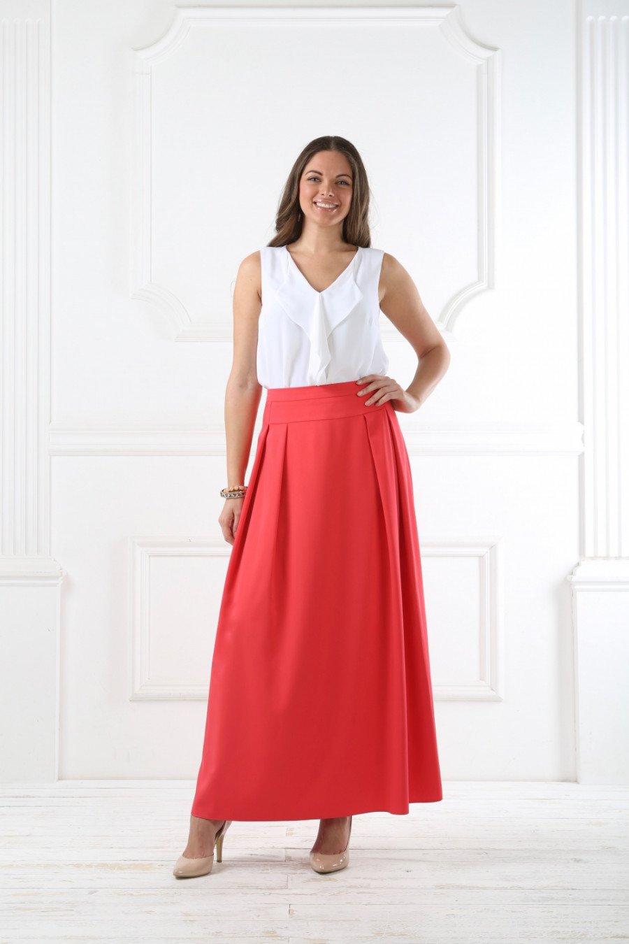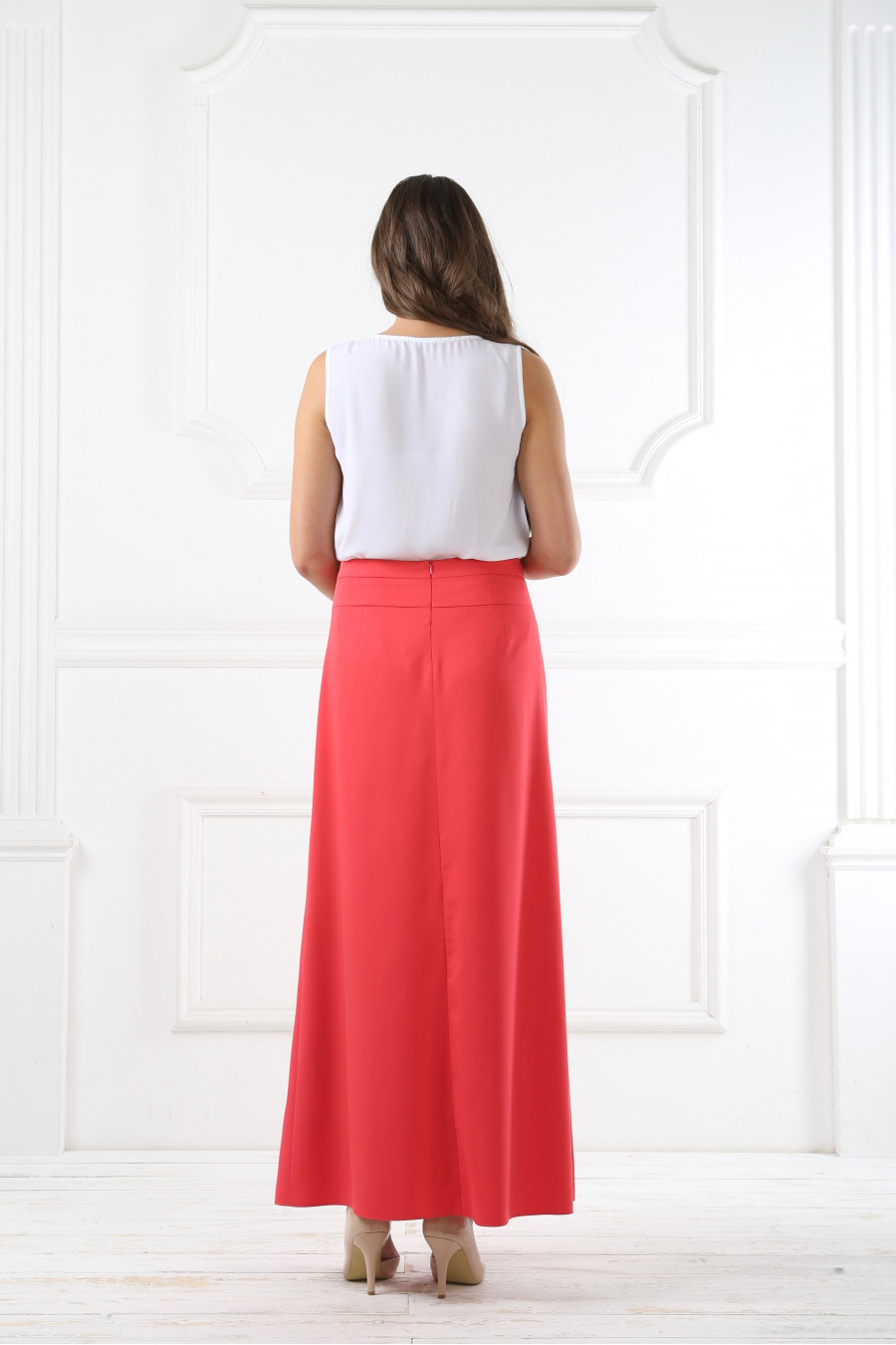 Юбка коралловая на средней посадке длинная - «Пасифик»