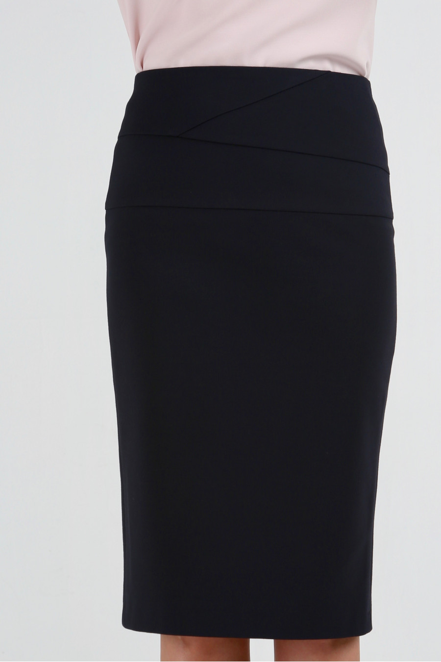 Юбка на средней посадке средней длины с разрезным поясом "Трикотаж" синяя