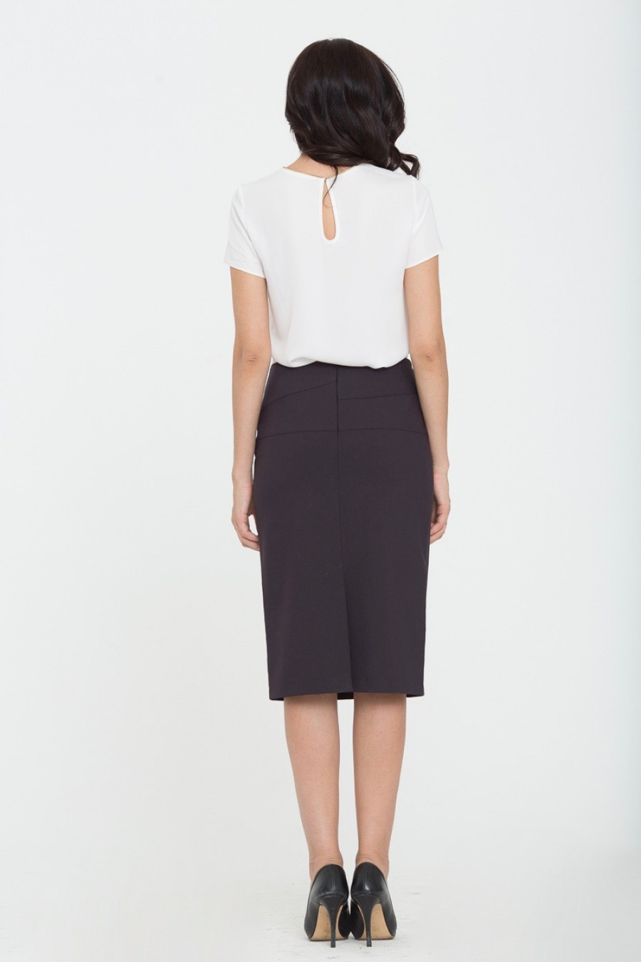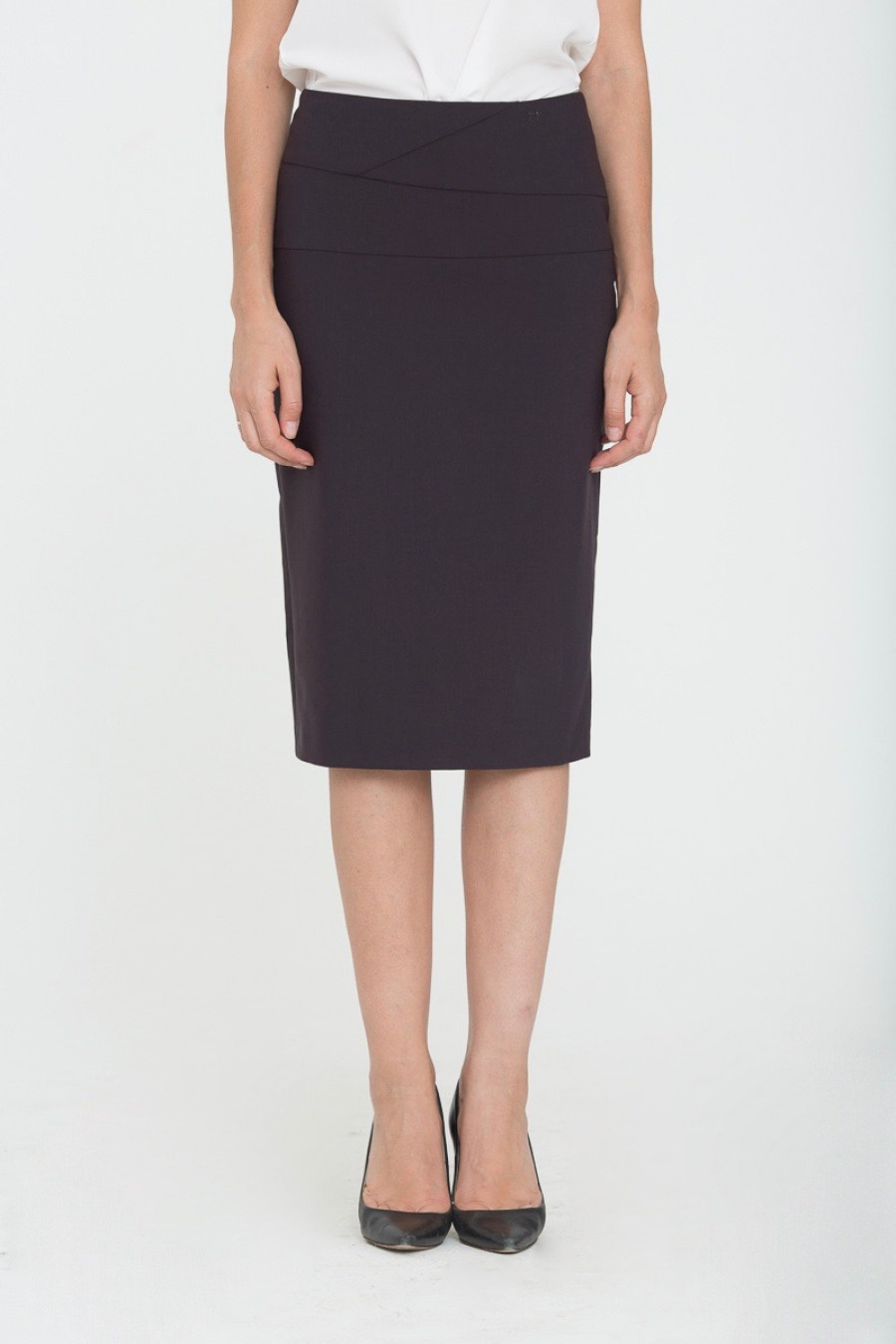 Юбка на средней посадке средней длины с разрезным поясом "Модерн" серая