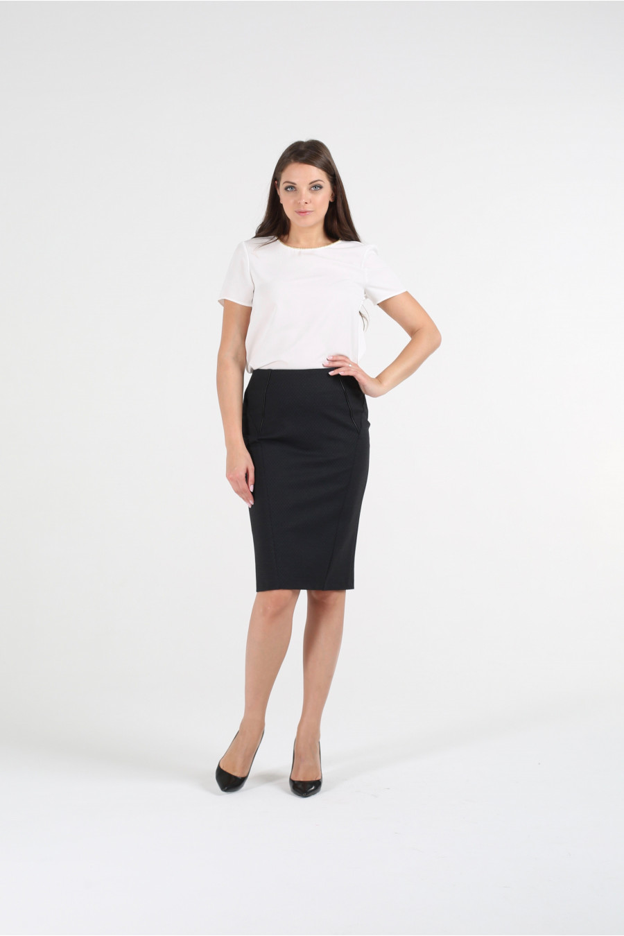 Юбка на средней посадке средней длины "Трикотаж" "Крупные Соты" серо-черная