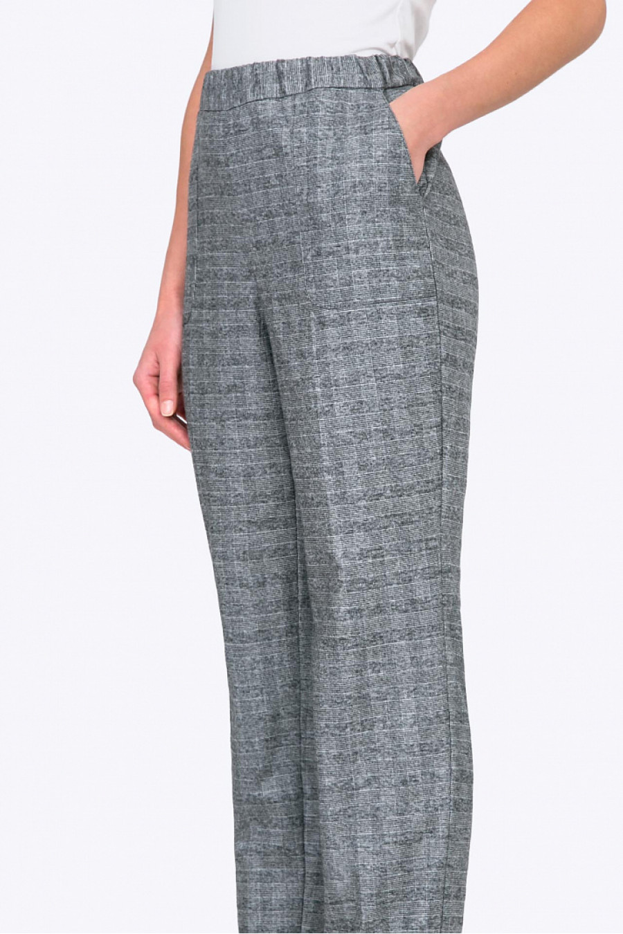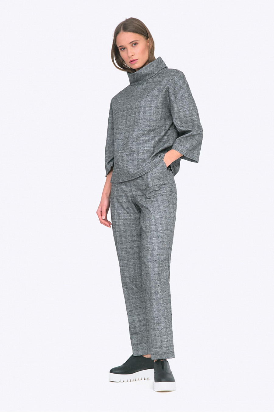Свободные городские брюки полуспортивного стиля с посадкой на широкой резинке станут прекрасным выбором для активных женщин, ценящих свое время. Универсальный светло-серебристый цвет в мелкую клетку и практичный фасон этой модели без усилий образуют основу для стильных стрит-луков. С лаконичной блузой широкого кроя в комплекте - этот актуальный костюм прекрасно подойдет любому типу фигуры. С черной, белой или яркой водолазкой (джемпером), - получаем отличный повседневный офисный образ, а со спортивной футболкой и сникерсами - энергичный уличный. Мягкая, но плотная смесовая ткань с содержанием вискозы проста в уходе и комфортна в носке. Образ на фото дополнен Блузкой B2268-angira. Рост фотомодели 170 см.