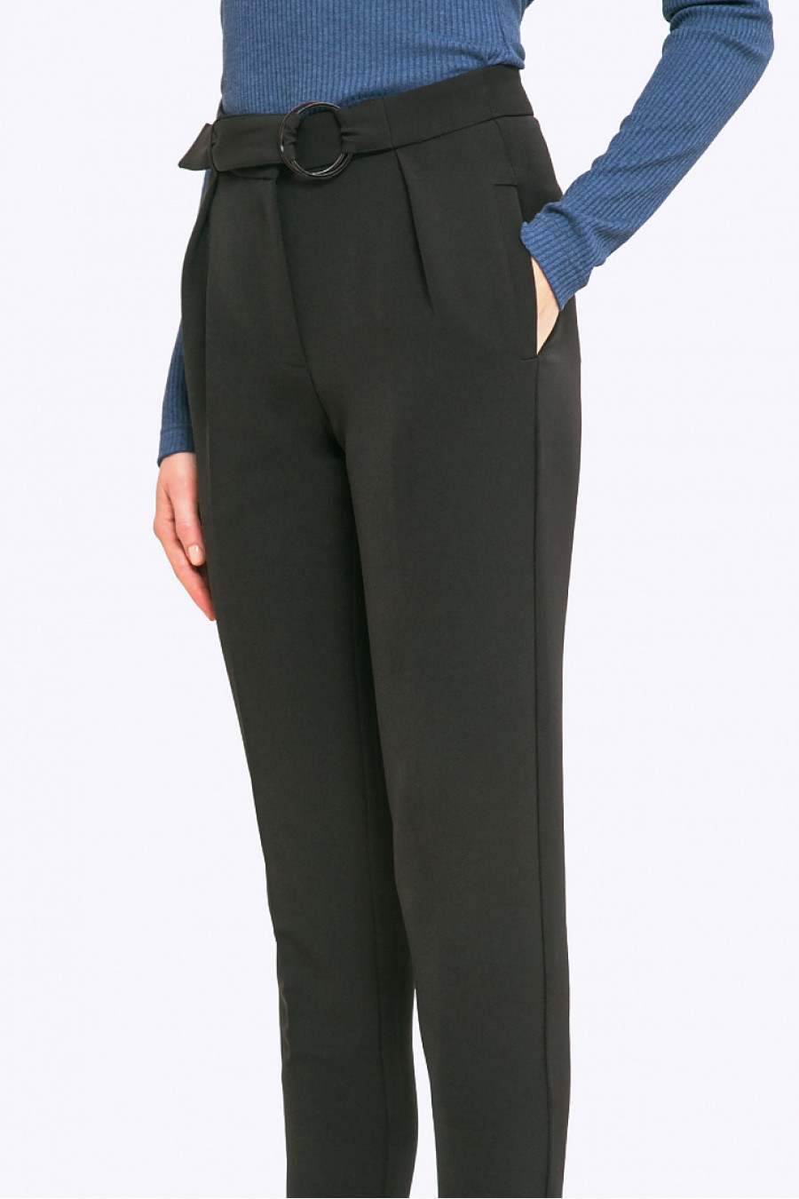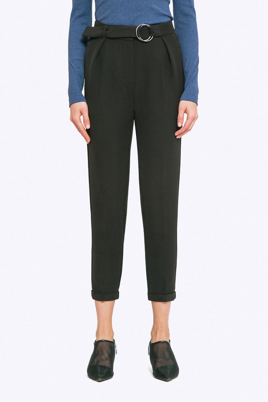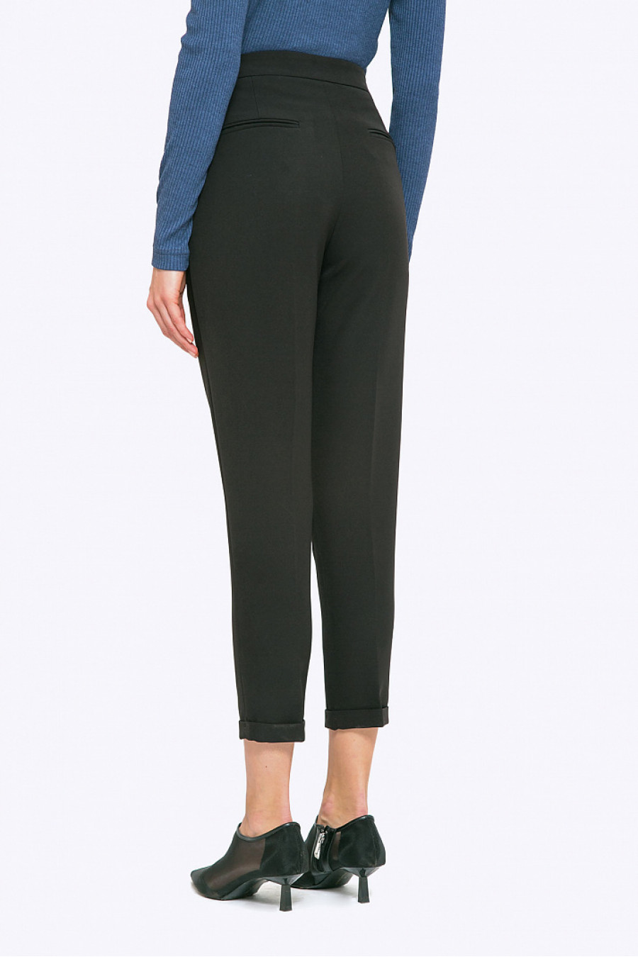 Модные черные брюки - универсальное решение для создания множества городских, офисных и вечерних look-ов.С цветной водолазкой или рубашкой, коротким жилетом - образуем актуальный деловой комплект, с белой или алой шелковой блузой и дорогими аксессуарами - нарядный выходной костюм. Гармонично укороченная линия низа брючин - подчернет красоту лодыжек и визуально удлинит силуэт, продуманные складки на поясе - дадут свободу посадке, тканевый ремень на круглой пряжке - придаст законченность образу. Мягкая смесовая ткань практична в уходе и приятна в носке. Образ на фото дополнен Блузкой B2303-allure. Рост фотомодели 178 см.