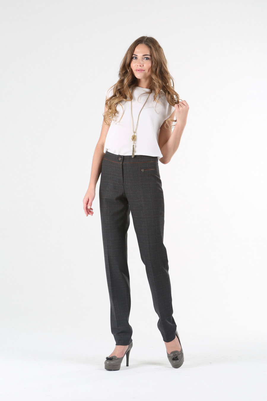Брюки на средней посадке зауженные к низу "Бланко" сине-рыжие