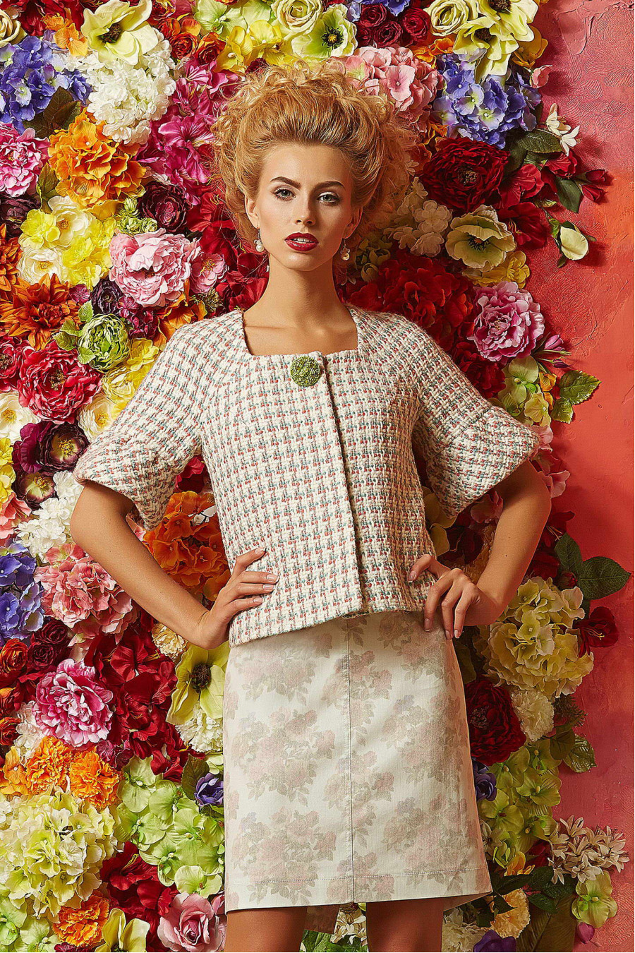 Классический женский жакет в стиле Chanel, выполнен из итальянского твида. Женский твид хорошо держит форму, поэтому идеально сидит в плечах, подчёркивает силуэт, совершенно не сковывая движений. Рукав у модели жакета укороченный, поэтому хорошим аксессуаром к нему будут длинные перчатки. Застежка потайная, оригинальным дополнением служит декоративная пуговица. Изделие на подкладке. (Юбка артикул M2229Y4001).