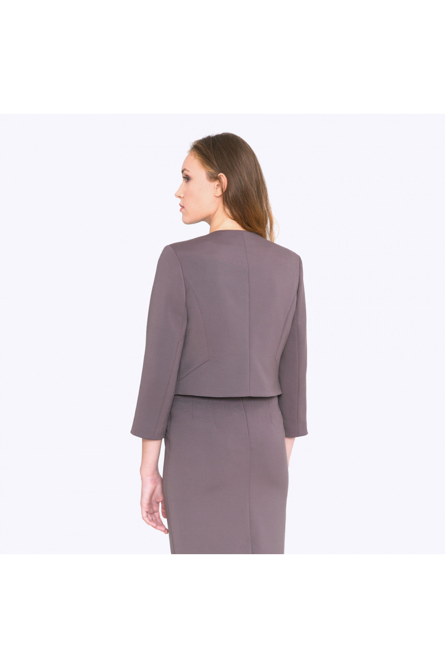 Элегантный укороченный жакет. Ткань мягкая, приятная на ощупь. Жакет застегивается на металлический крючок. Есть легкая подкладка из полиэстера. Жакет отлично смотрится с классической юбкой-карандаш, хорошо подойдет как для офиса, так и для торжественных деловых мероприятий.