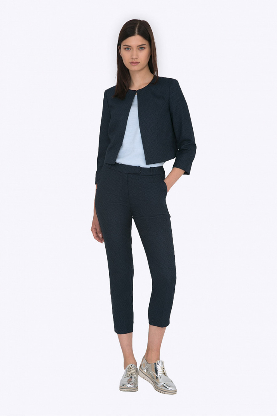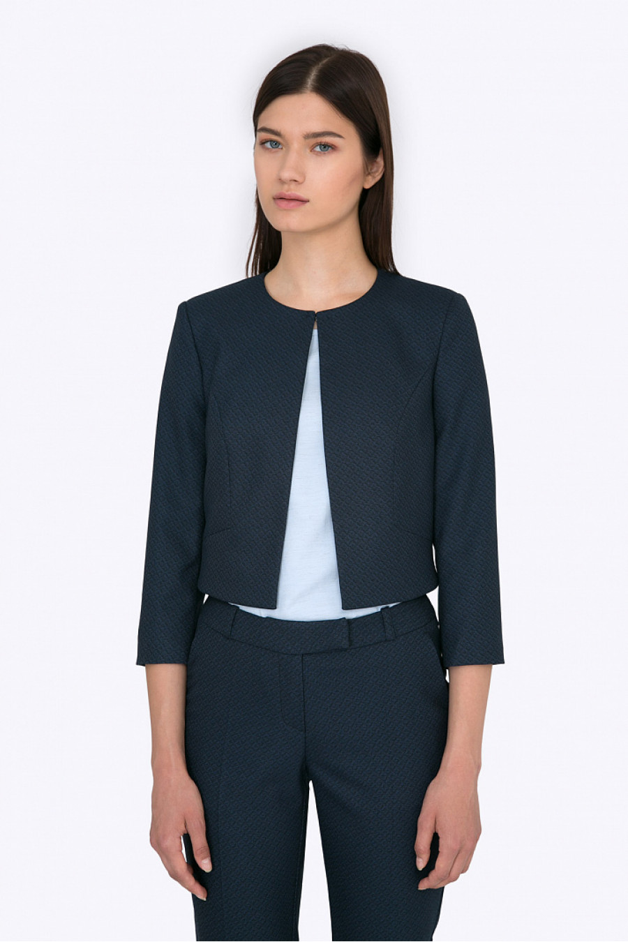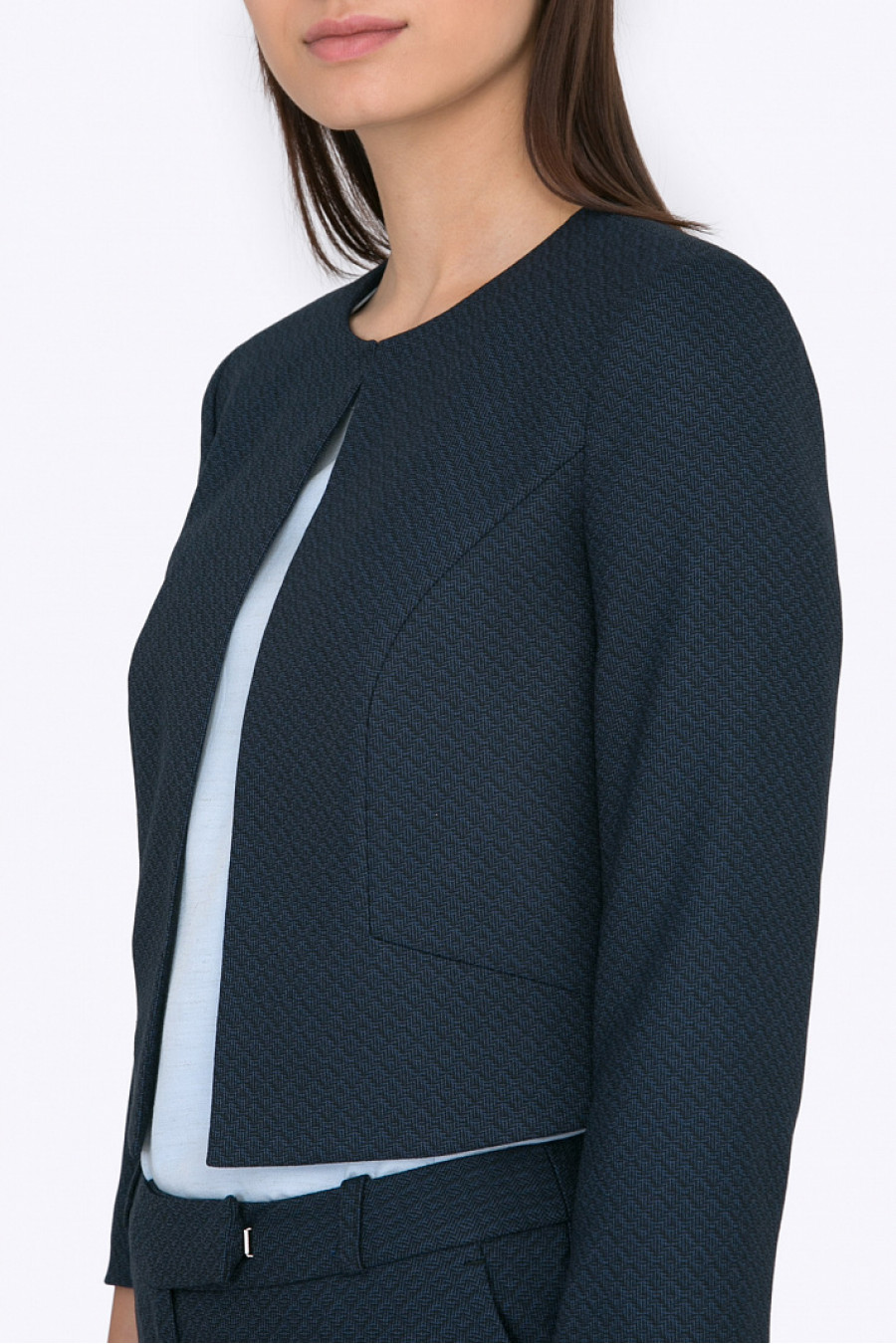 Элегантный укороченный жакет. Ткань мягкая, приятная на ощупь. Жакет застегивается на металлический крючок. Есть легкая подкладка из полиэстера. Рост фотомодели 178 см.