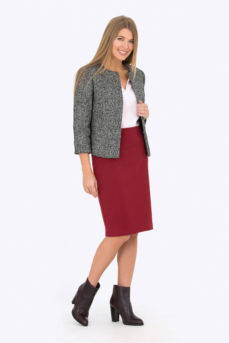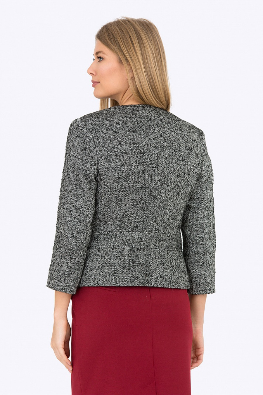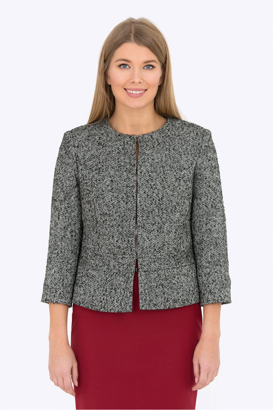 Жакет из твида приталенного силуэта с рукавами 3/4. Есть подкладка. Застежка на крючки. Модель универсальная, хорошо сидит по фигуре. Жакет – обязательная деталь гардероба любой женщины. Особенно важен он в создании офисного стиля. Кроме того, жакет вполне может стать прекрасным дополнением вечернего, и повседневного образа.Рост фотомодели 170 см.
