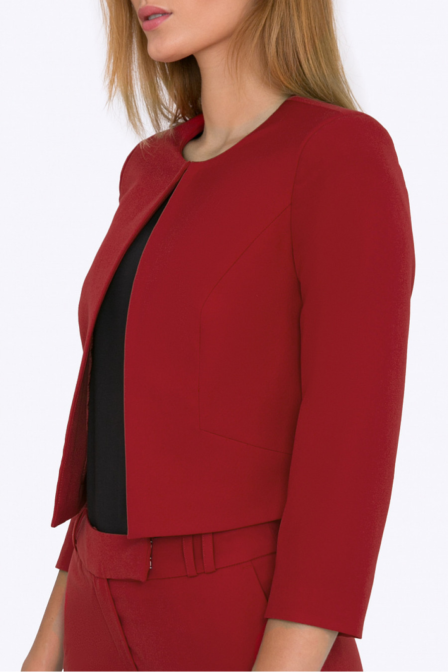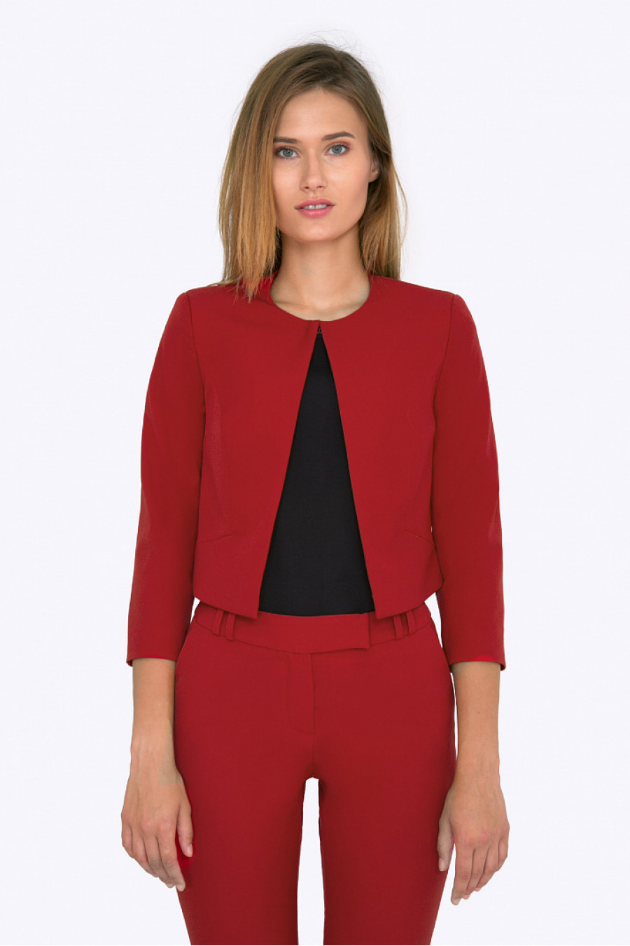Элегантный укороченный жакет. Ткань плотная. Жакет застегивается на металлический крючок. Есть легкая подкладка из полиэстера. Жакет отлично смотрится с классической юбкой-карандаш, хорошо подойдет как для офиса, так и для торжественных деловых мероприятий. Рост фотомодели 175 см.
