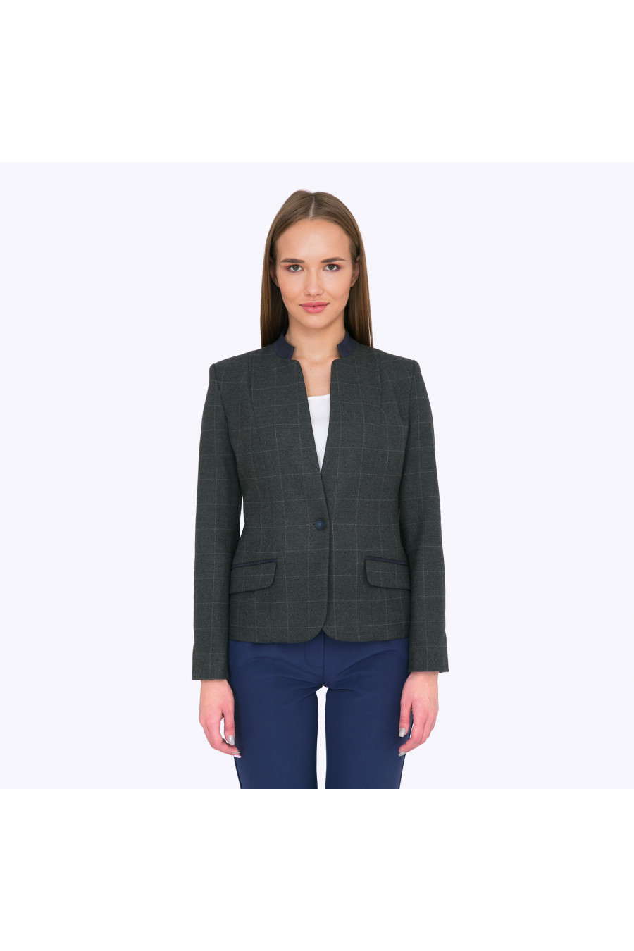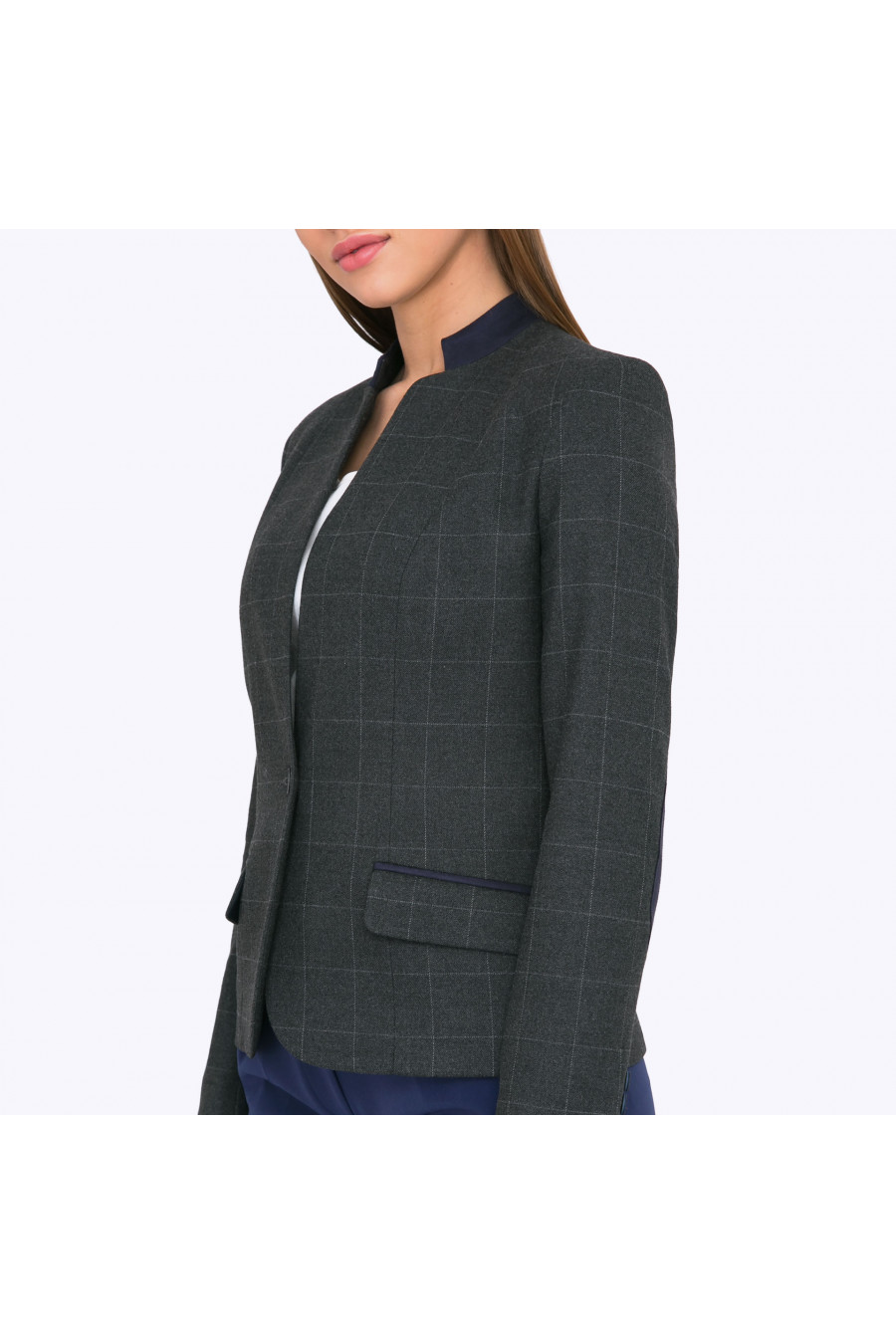 Стильный элегантный пиджак современного дизайна со слегка неформальными деталями (тонким прилегающим воротничком и декоративнымизаплатками на рукавах из контрастной ткани) - станет отличным выбором для молодых и активных! Совершенные линии силуэта, пуговица -сингл, красивые ложные карманы с отделкой, практичная смесовая ткань благородного оттенка антрацит в легкую клетку , - сделают эту модель незаменимой для создания актуальных деловых look-ов. Пиджак отлично смотрится с брюками и юбками практически любого фасона, свободный крой модели подойдет любому типу фигуры. Образ на фото дополнен Брюками D074-elizavetta, Блузкой B2284-desponi. Рост фотомодели 174 см.