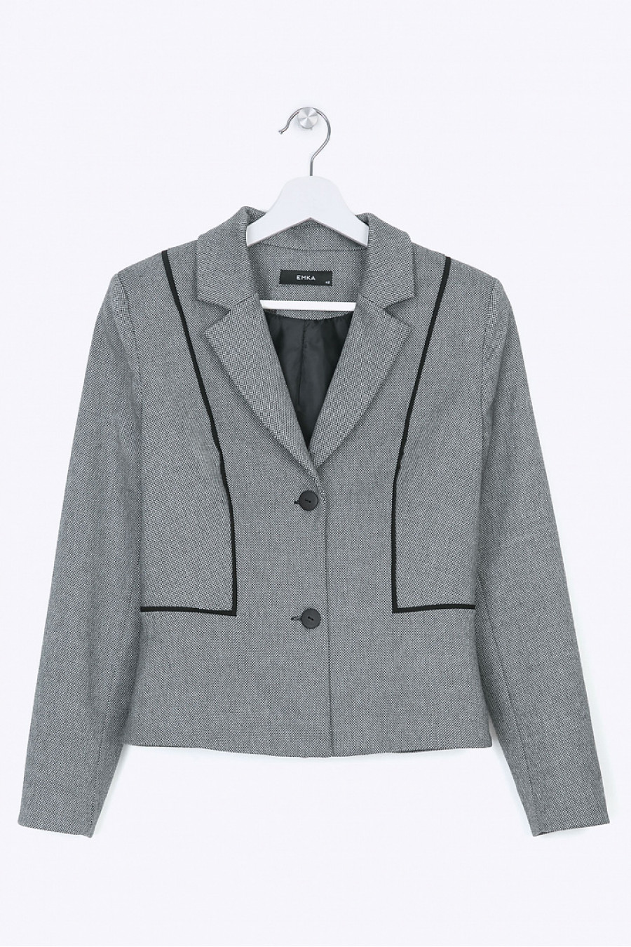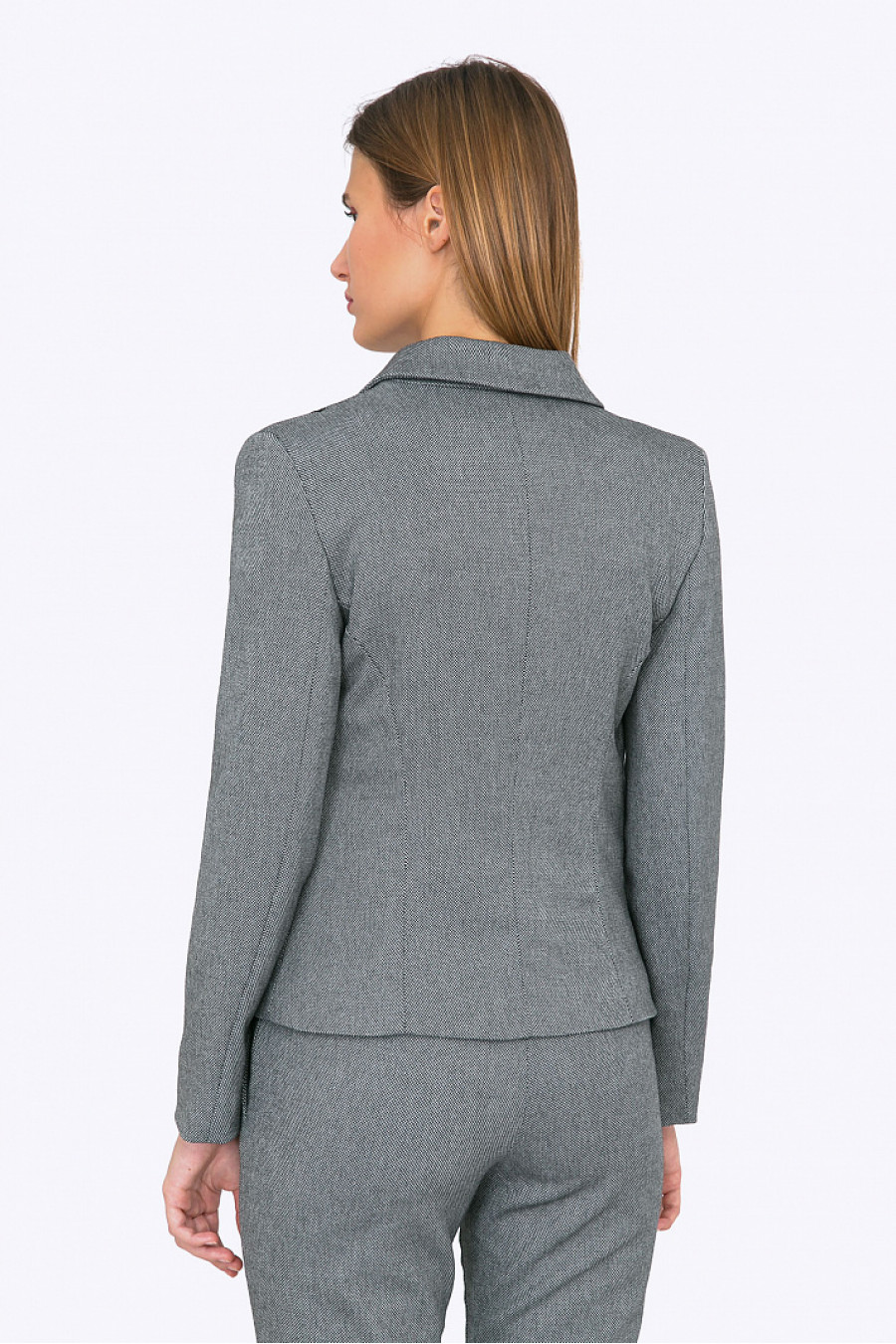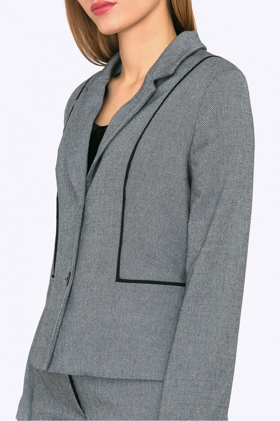 Жакет в деловом стиле с лацканами. Спереди модель оформленадекоративными рельефами с кантом. Ткань мягкая.Подкладка из полиэстера. Жакет прекрасно подойдетдля офиса, поможет создать образ в стиле бизнес-woman. Рост фотомодели 175 см.