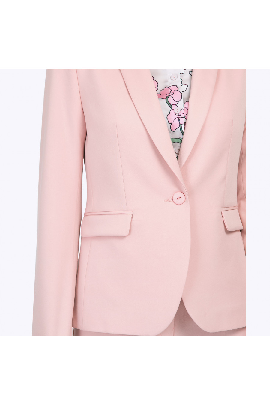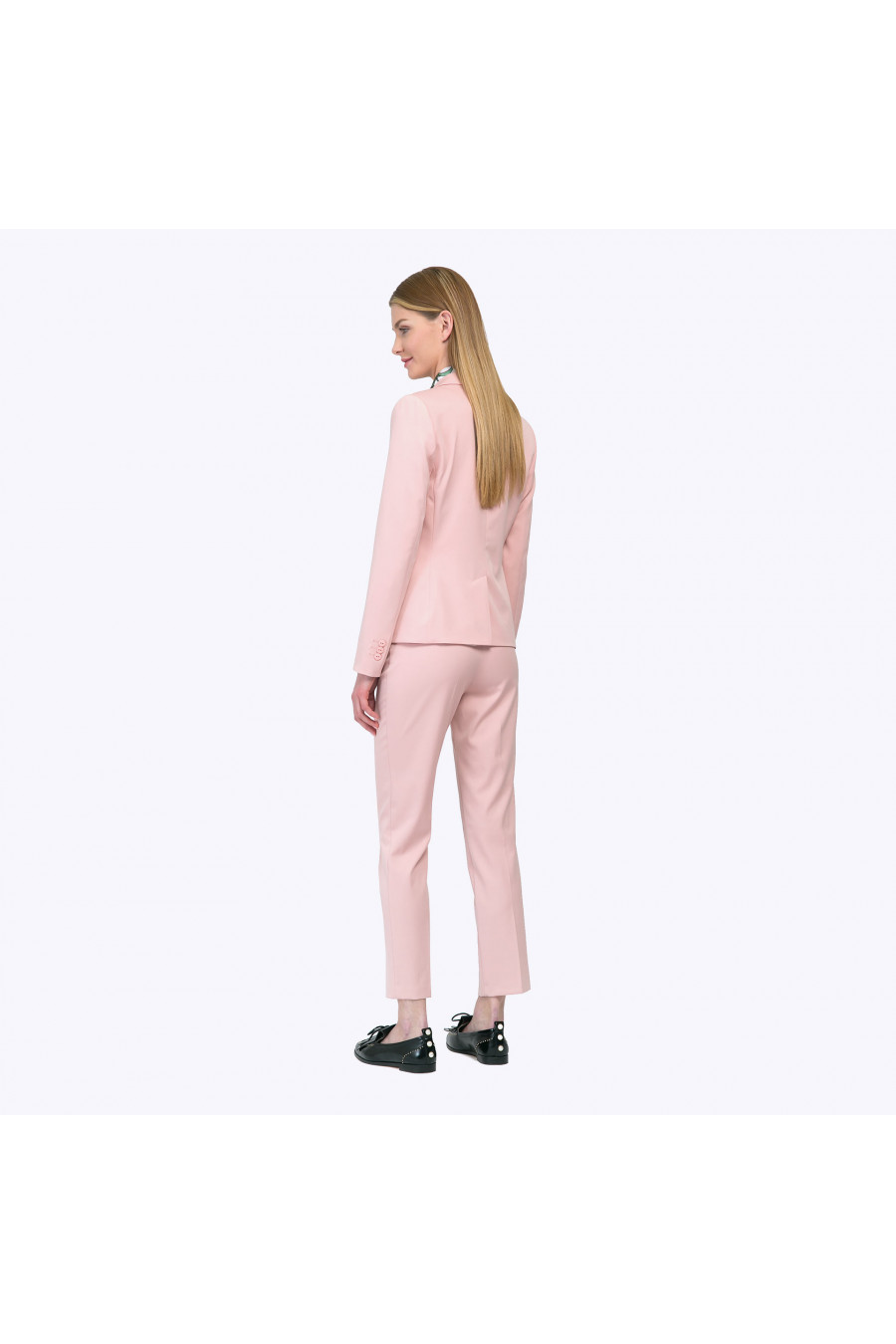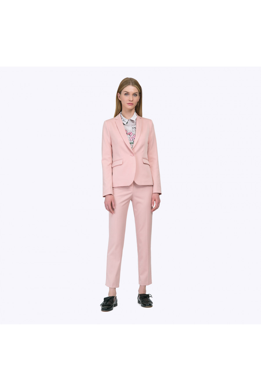 Безупречный женственный пиджак делового стиля внесет разнообразие и свежесть в строгий деловой дресс-код. С подобными брюками в комплекте, креативной блузой жемчужного оттенка стильный рабочий образ будет бесподобен. Лаковые лоферы уместны. Образ на фото дополнен блузкой B2198-sting