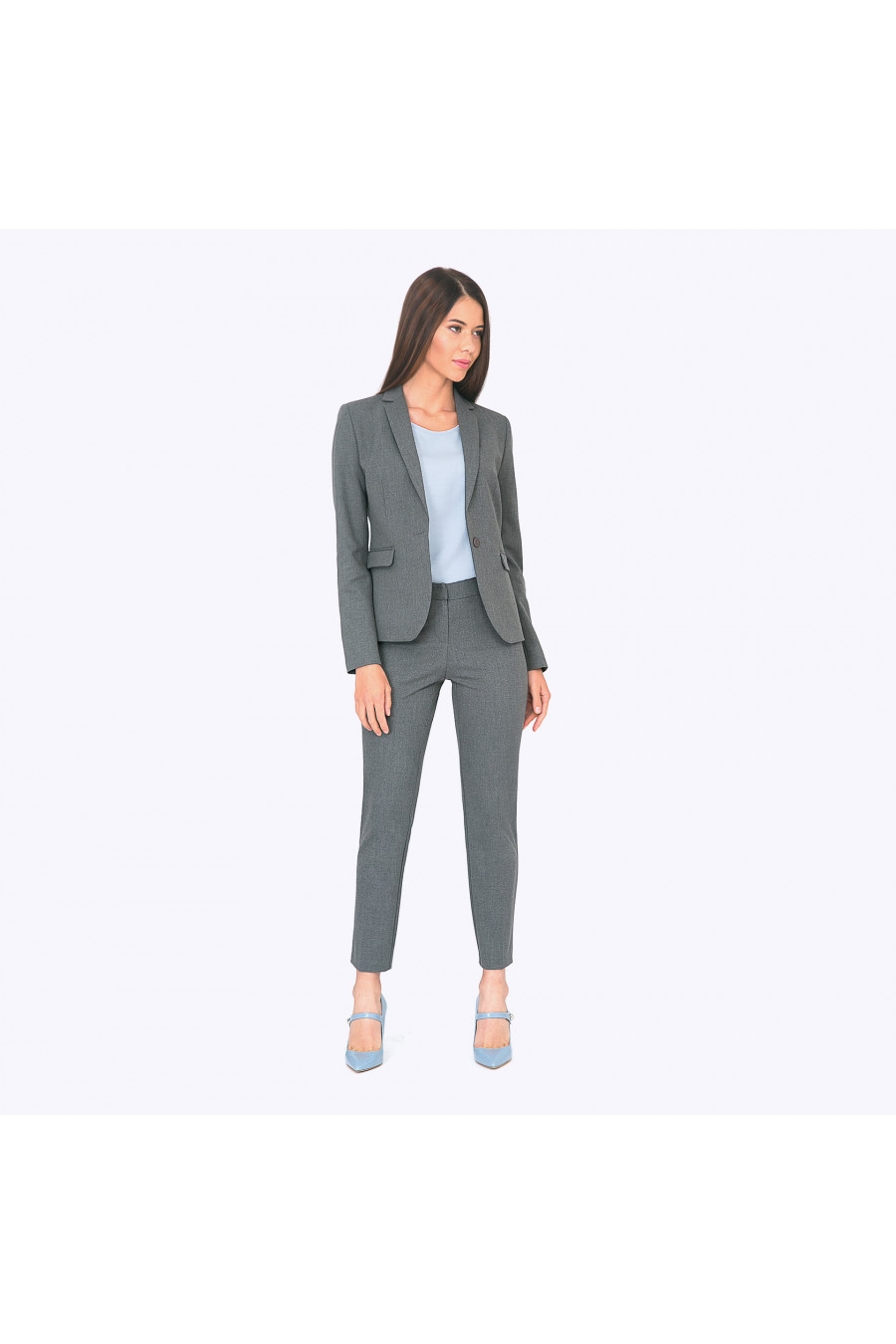 Жакет в деловом стиле с лацканами. Спереди модель оформленакарманами с клапанами. Подкладка из полиэстера. Жакет прекрасно подойдет для офиса, поможет создать образ в стиле бизнес-woman.
