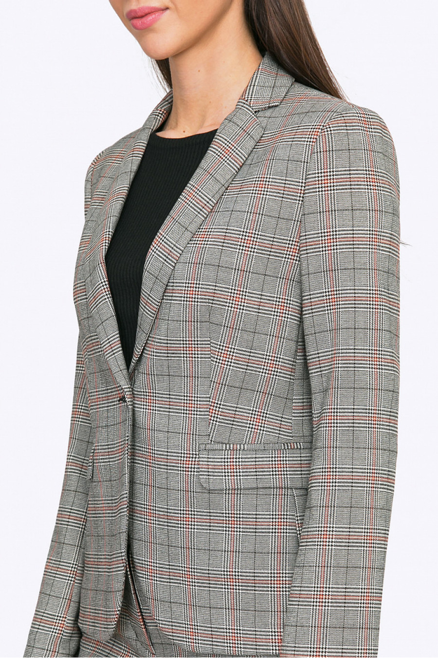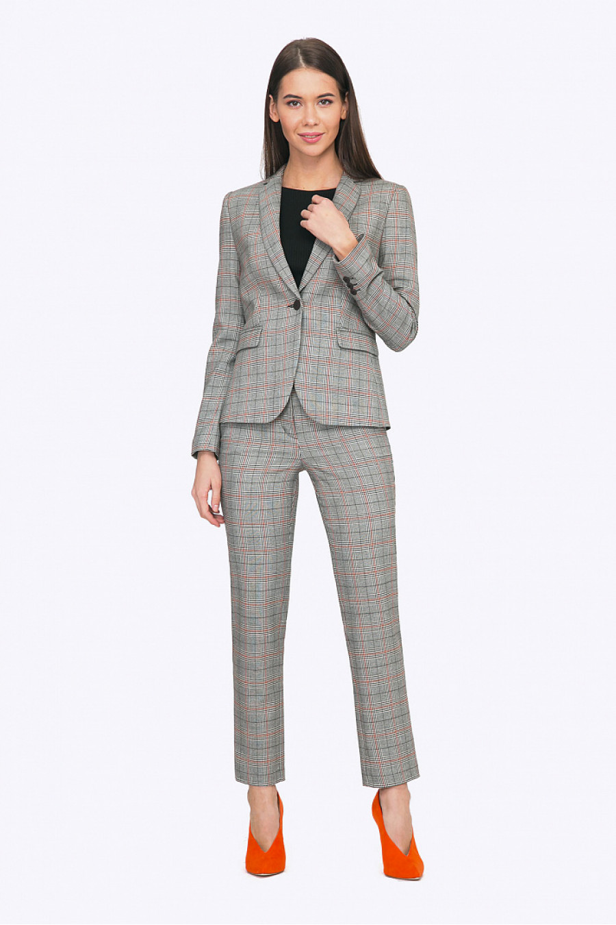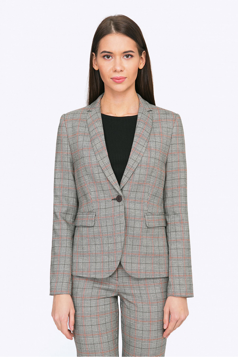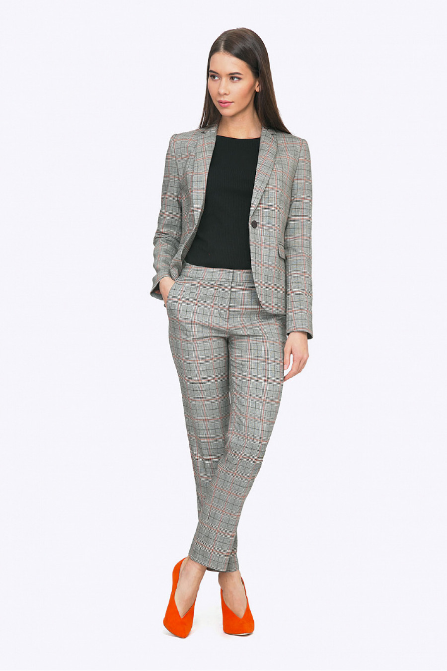 Современный лаконичный пиджак нео-классического дизайна с гармоничными деталями (скругленным отложным воротничком, карманами с декоративным кантом) - станет отличным выбором для создания актуальных и женственных образов. Совершенные линии силуэта, пуговица - сингл на бортах, три пуговки на рукавах, практичная смесовая ткань модного меланжевого тона в трендовую клетку, - сделают эту модель любимым предметом гардероба. Пиджак будет отлично смотреться с брюками и юбкойми почти любого фасона, красной или черной водолазкой, ботильонами. Свободный крой модели подойдет любому типу фигуры. Образ на фото дополнен брюками D047-taurus . Рост фотомодели 172см.