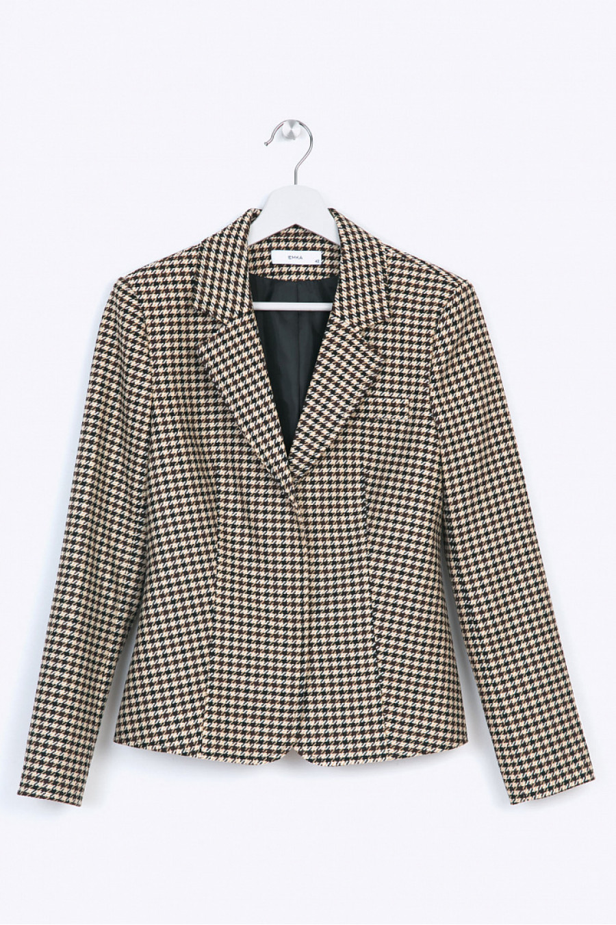 Классический однобортный пиджак с лацканами традиционной расцветки гусиная лапка в стильной интерпретации оттенков бежевого, коричневого и черного цвета. Ткань с вискозой отлично садится по силуэту, приятная по ощущениям. Вертикальные рельефные швы зрительно вытягивают силуэт. Пиджак на подкладе. Образ на фото дополнен юбкой S771-virgo . Рост фотомодели 175 см.