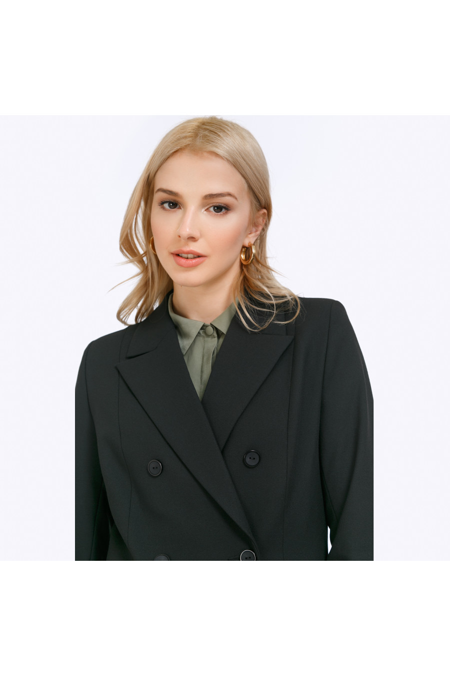 Классический двубортный жакет. Модель имеет строгий прямой силуэт с