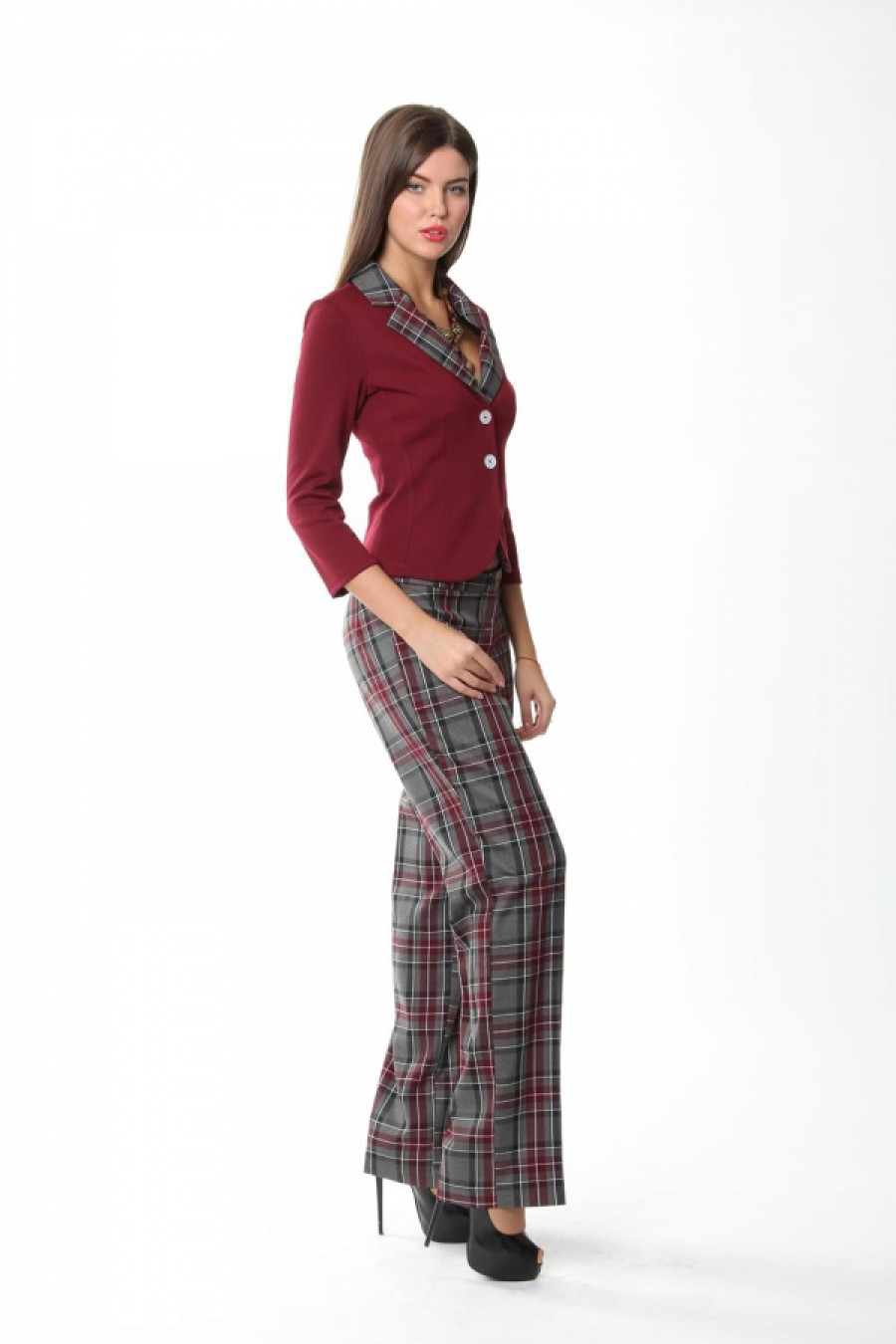 Замечательный жакет, который станет изысканным дополнением к любому Вашему гардеробу. Изделие с отложным воротником и длинными рукавами. Спереди удобная функциональная застежка. Гармонично сочетаются с брюками: артикул: 60577.
