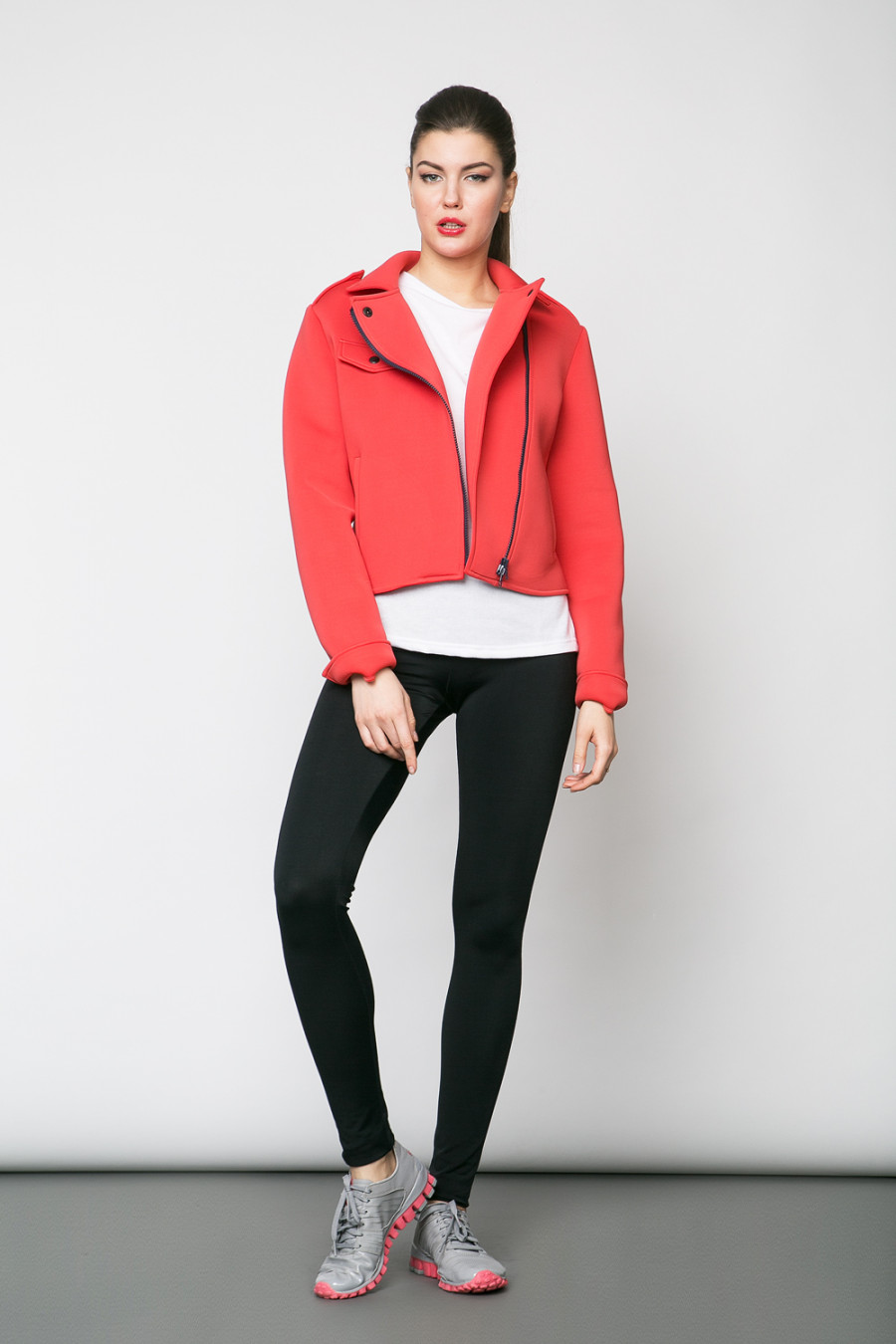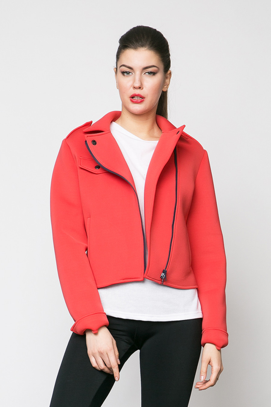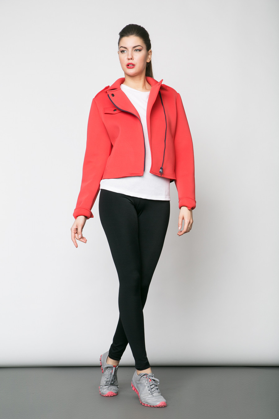 Стильный жакет-косуха на молнии, с длинным рукавом.