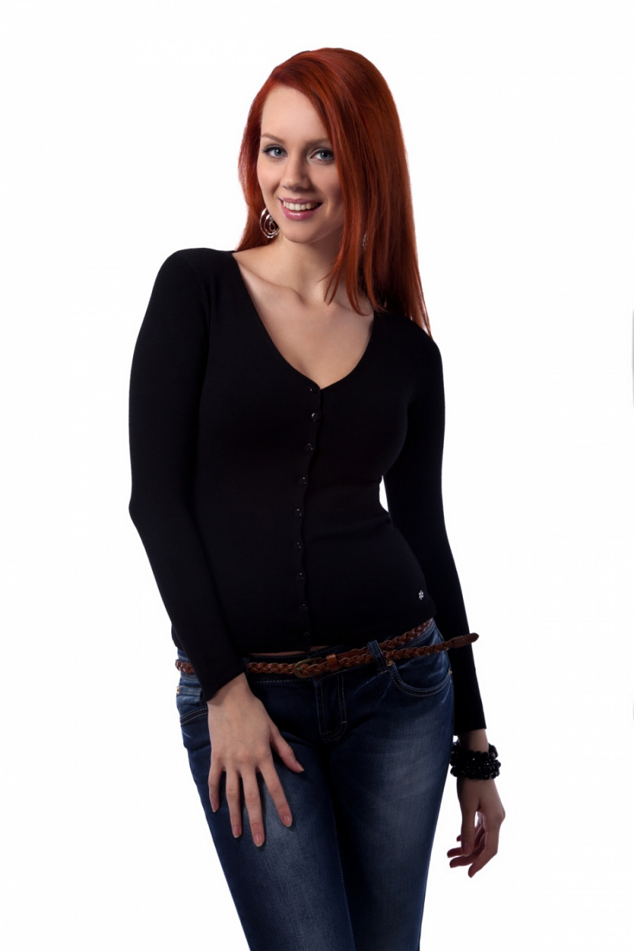 Классический жакет на пуговицах приталенного силуэта с длинным рукавом и V-образным вырезом горловины. Низ изделия обработан ""в рубчик"". Жакет с удобной застежкой на пуговицы. Модель выполнена из высококачественной пряжи, благодаря чему модель не теряет своей формы после стирки. Прекрасный повседневный вариант.